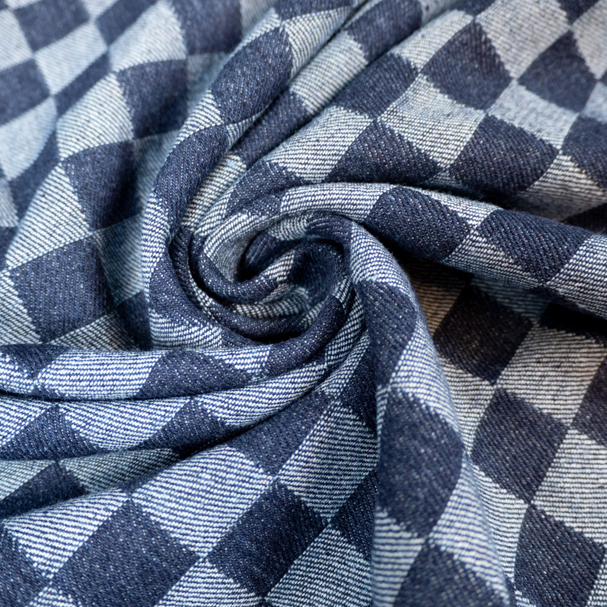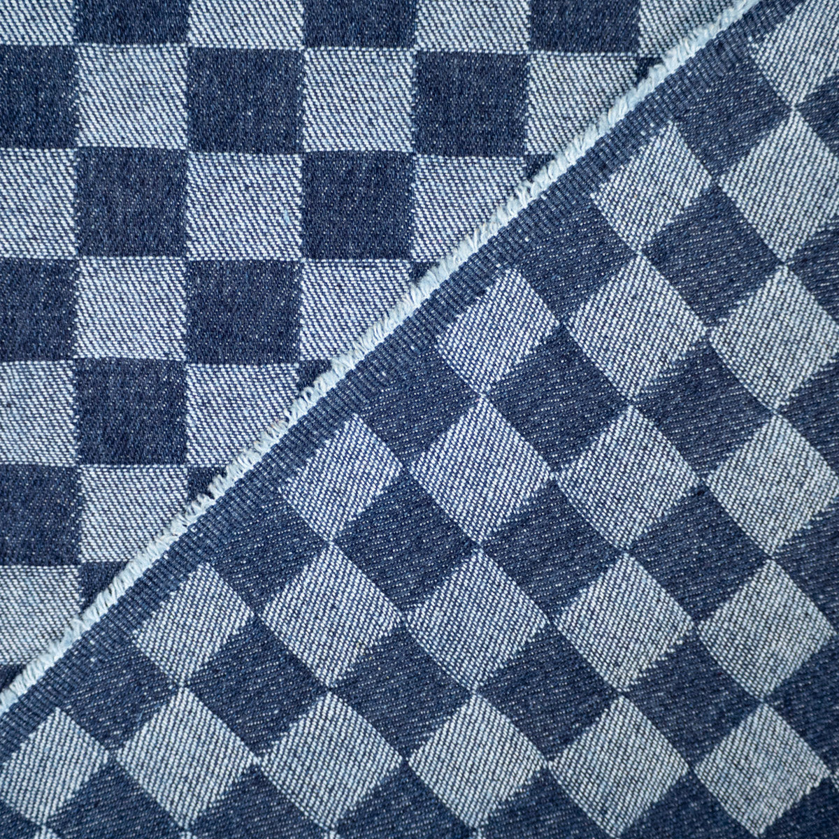 Tissu denim jacquard - Damier - Bleu jean bicolore