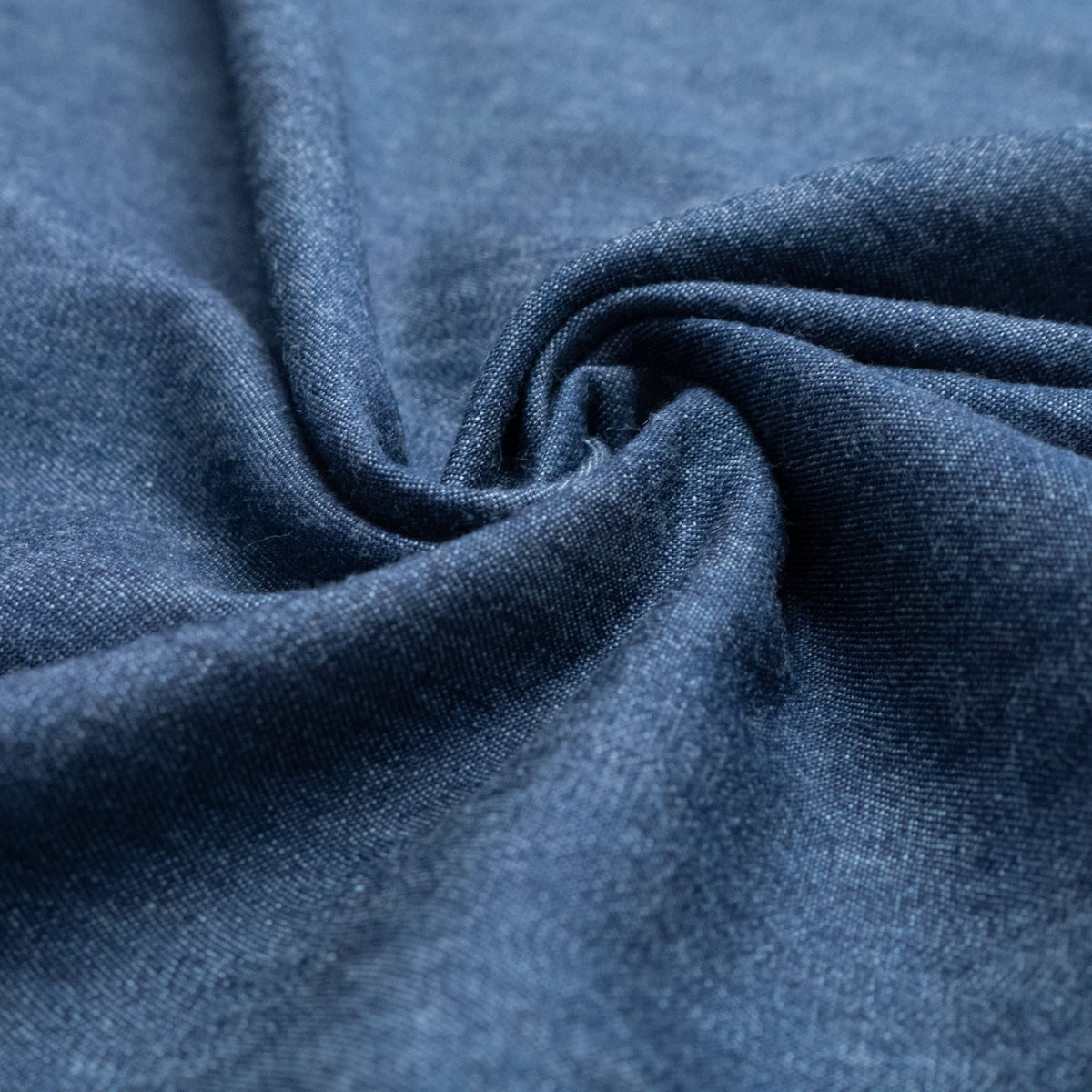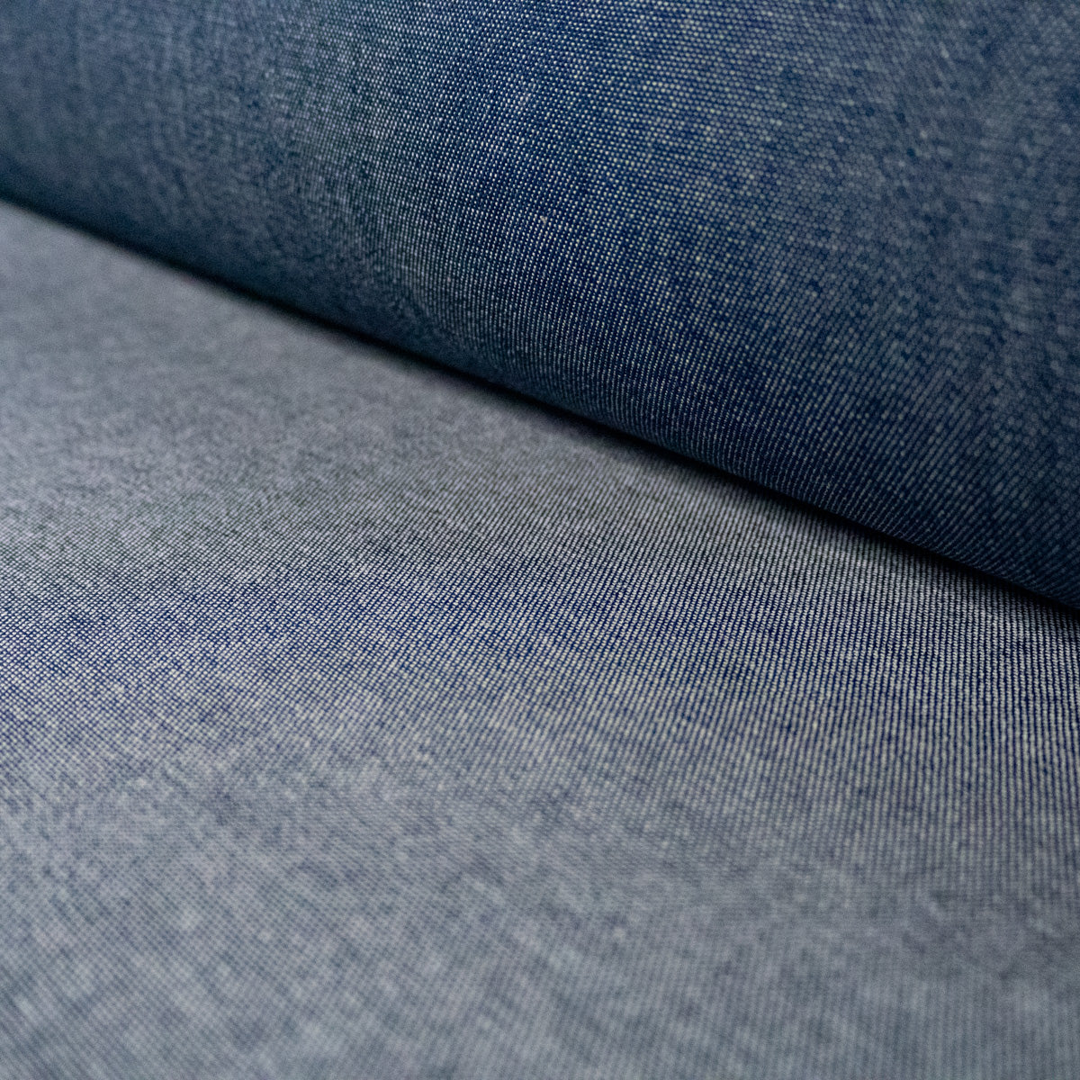 Le chambray est un tissu fin, la plupart du temps en coton, constitué d’un enchevêtrement de fils blancs et bleus, ce qui lui donne son aspect chiné. Souple et fluide, le chambray est très agréable à porter.