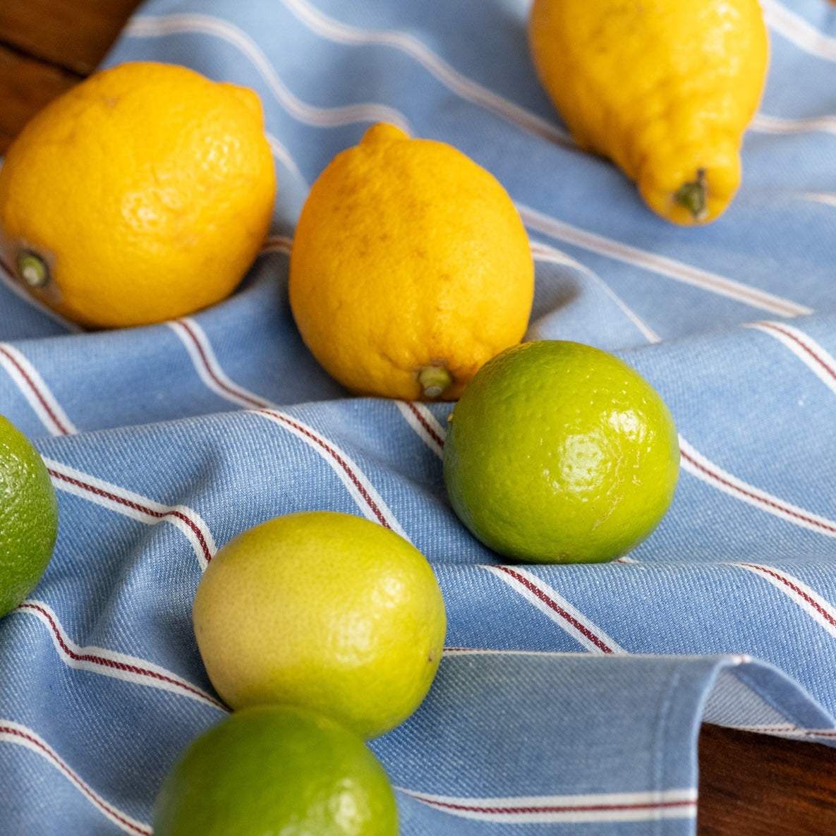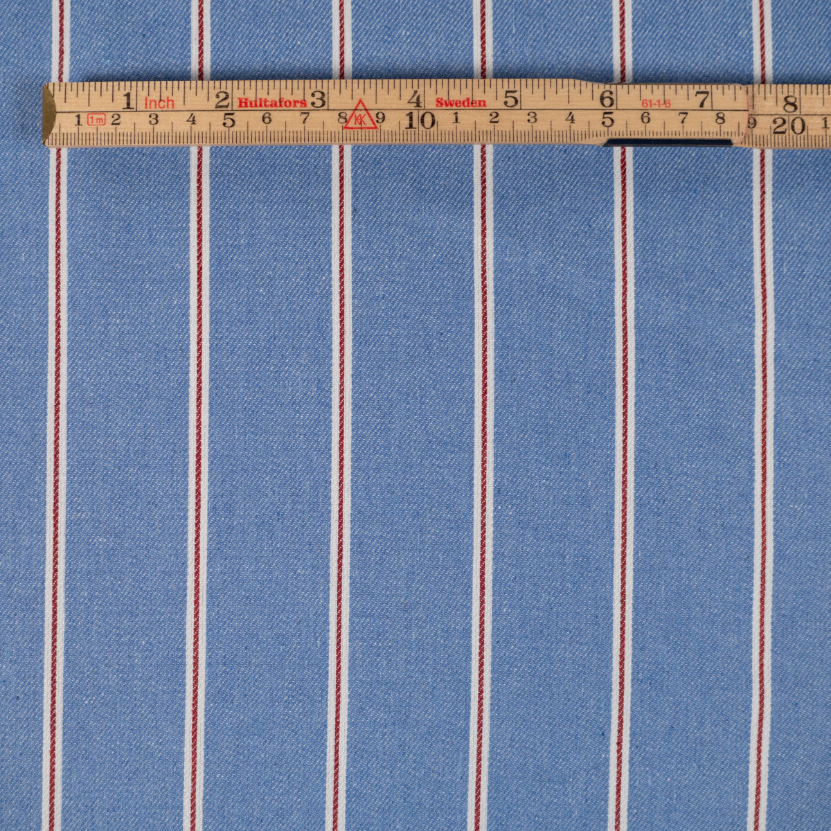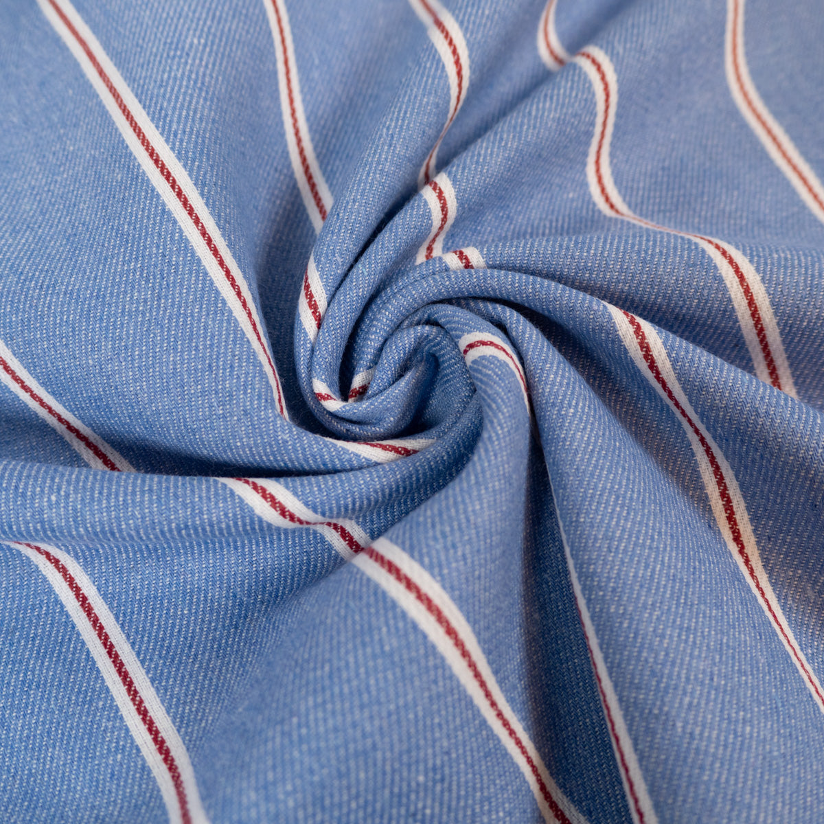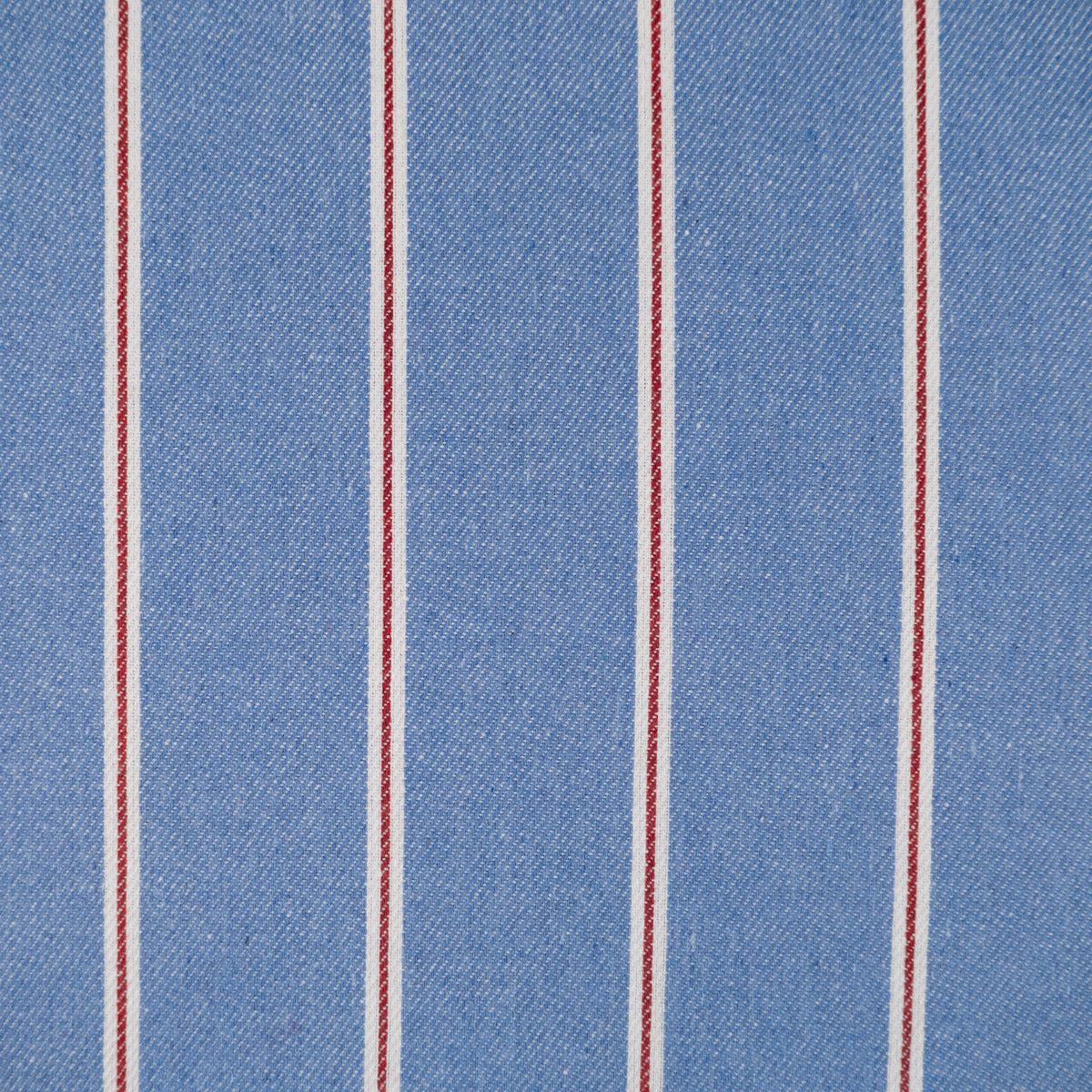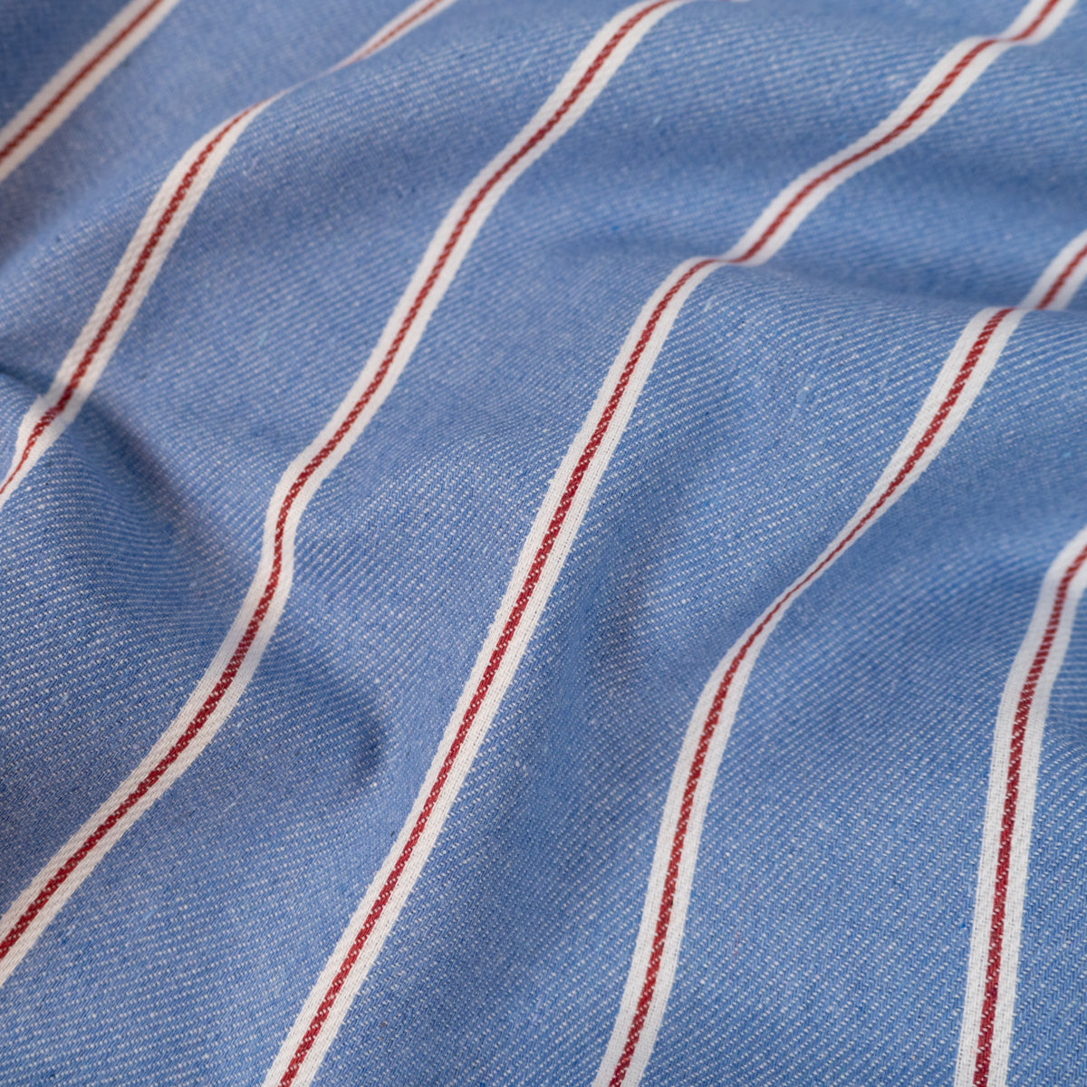 Tissu jean léger - Rayé - Bleu clair et rouge
