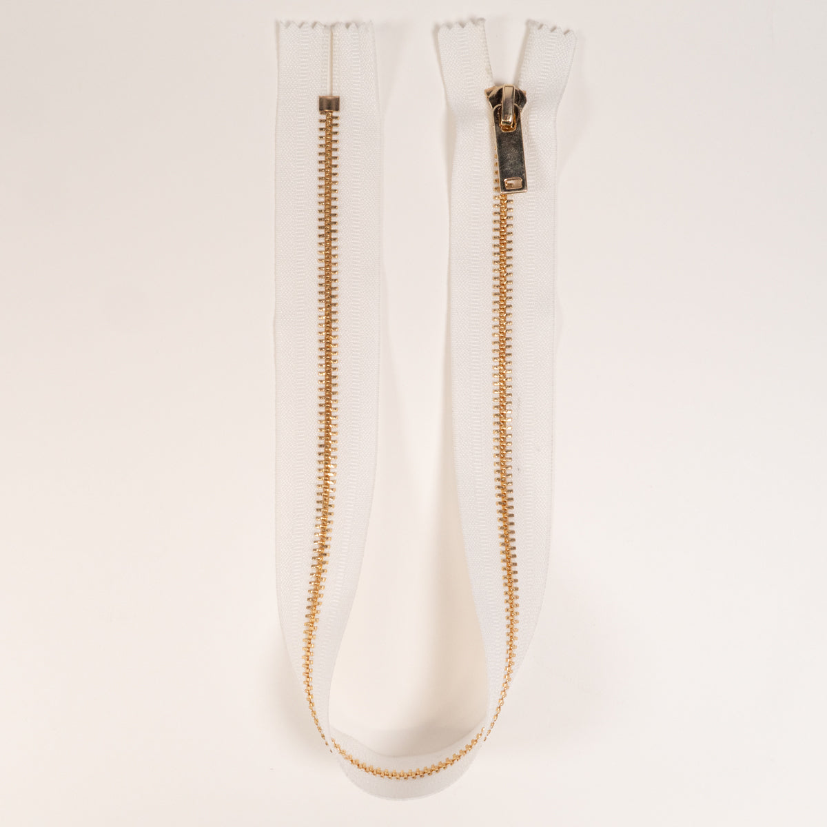 Fermeture à glissière métal - Simple curseur - Non séparable - Blanc