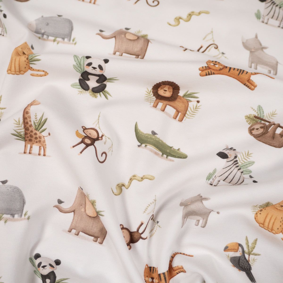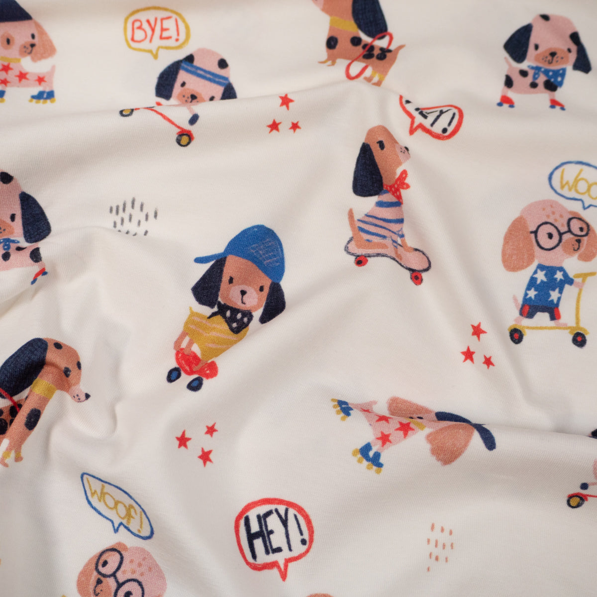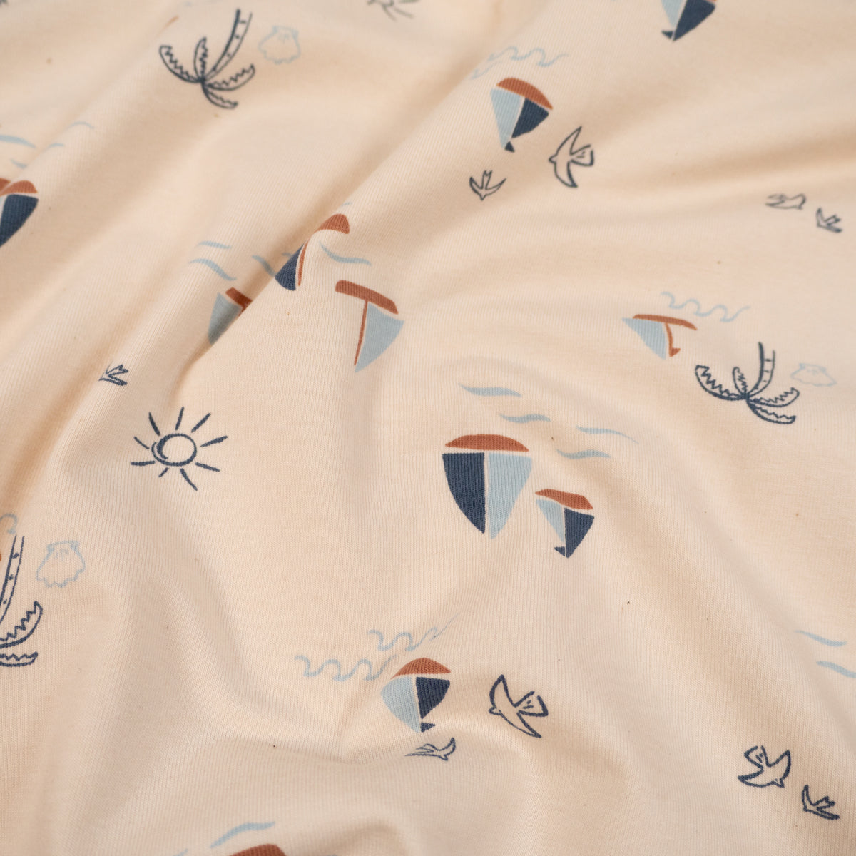Jersey est une maille fine, tricotée. Extensible, ce tissu est particulièrement adapté pour les vêtements ayant besoin de souplesse. Apprenez à coudre du jersey sans surjeteuse. Chez ikatee, nous vous proposons une gamme variée de Jerseys : coloris, épaisseurs et motifs, il y a forcément un Jersey qui vous plaira ! À la coupe par multiple de 10 cm à partir de 50 cm