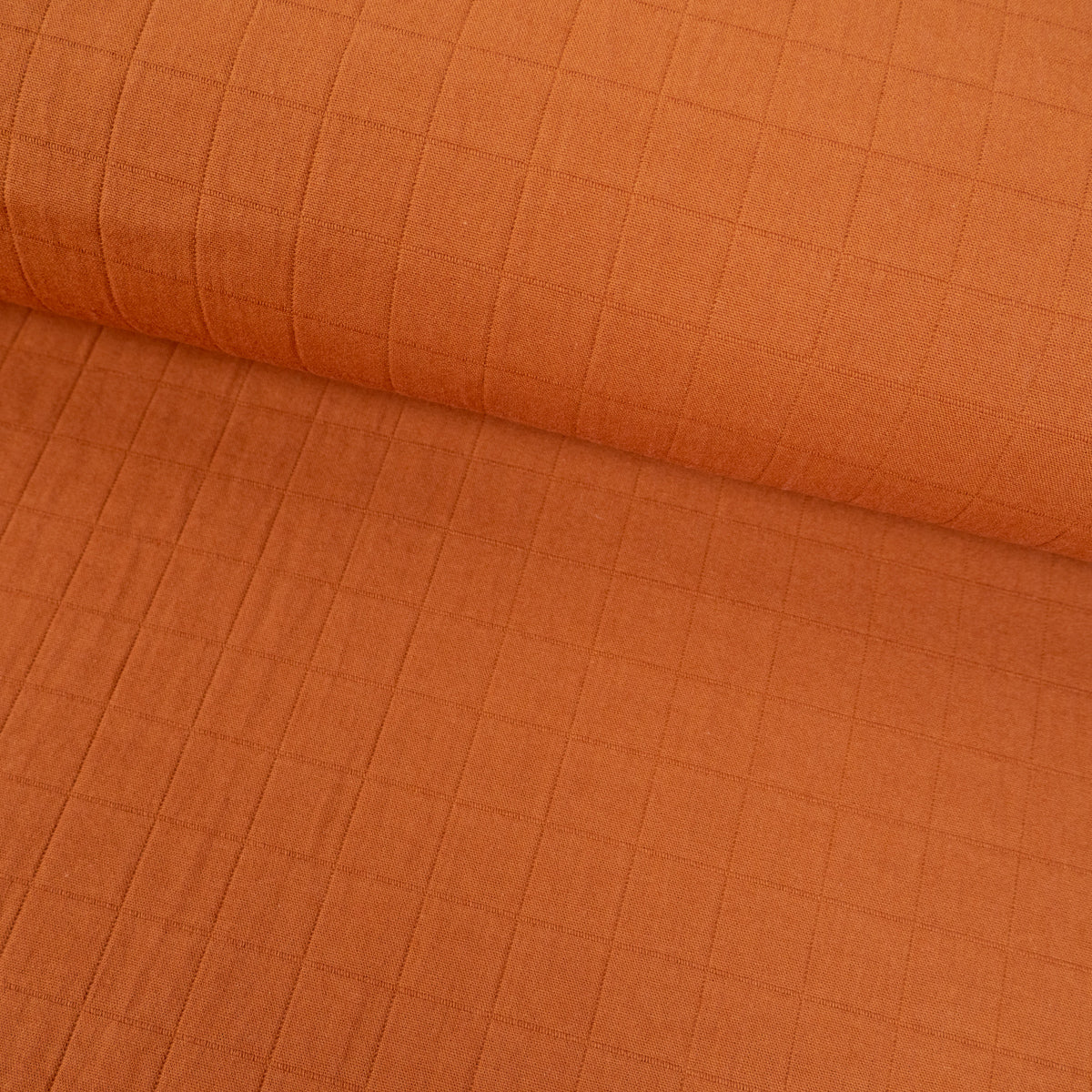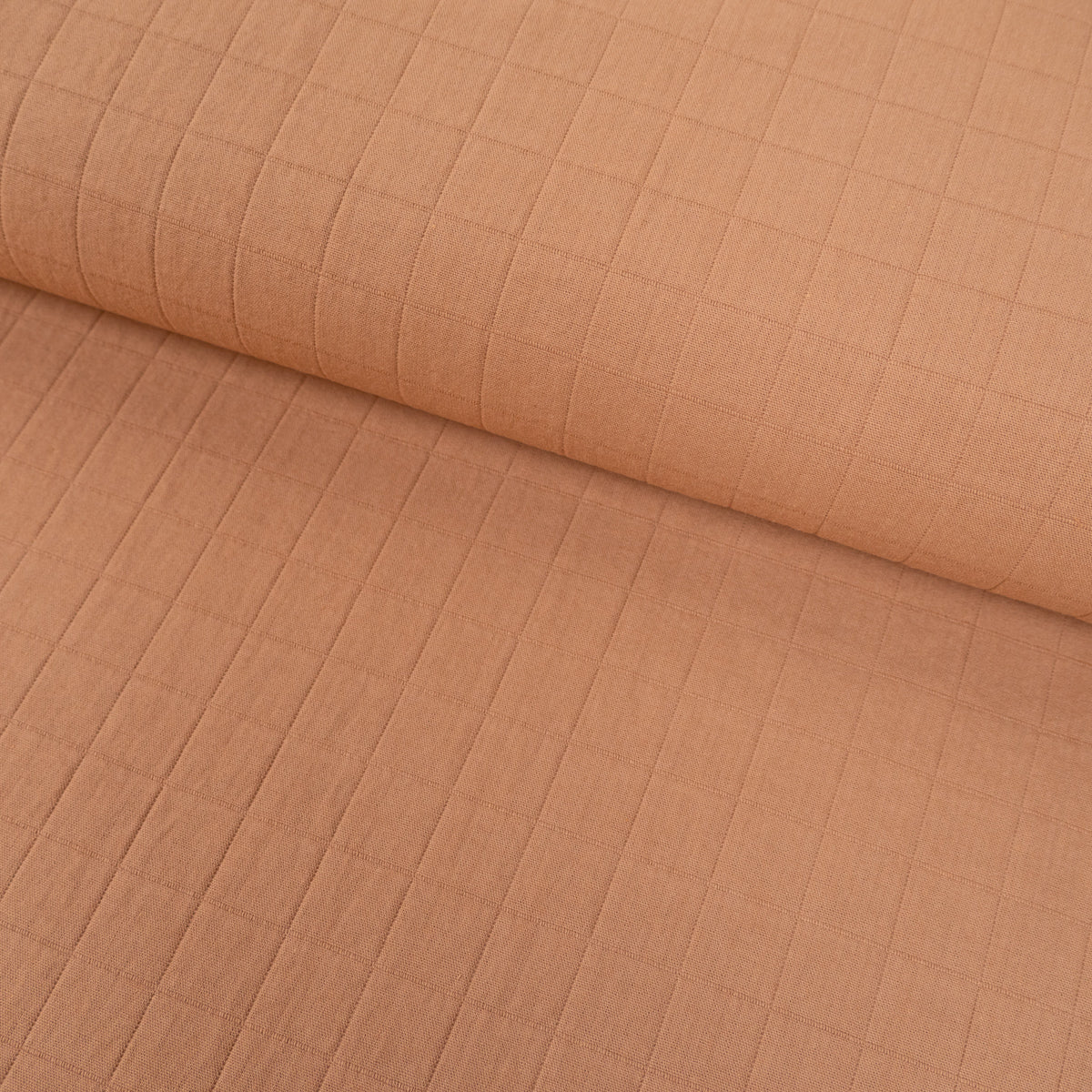 Tissu coton matelassé - Grands carreaux - Terre de sienne