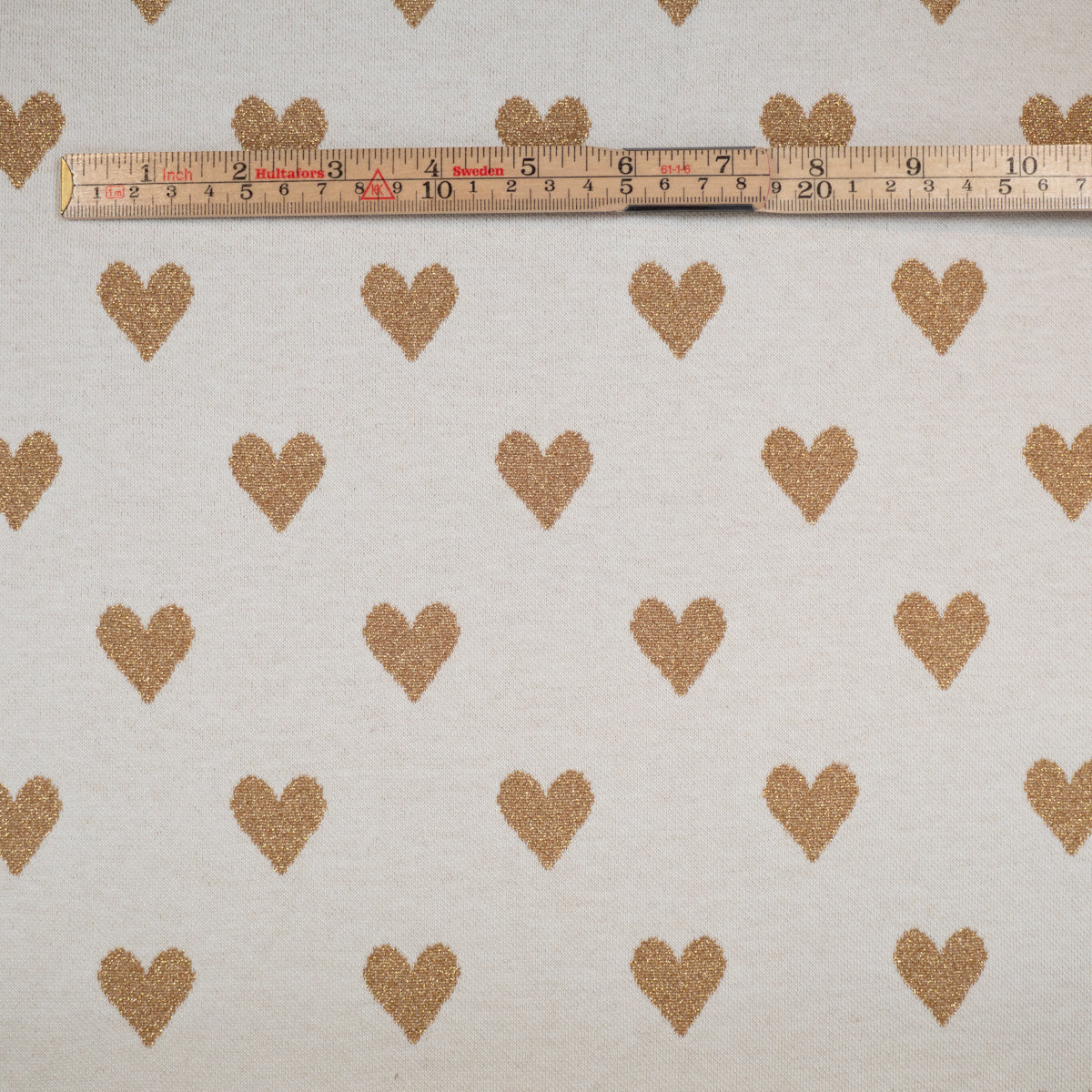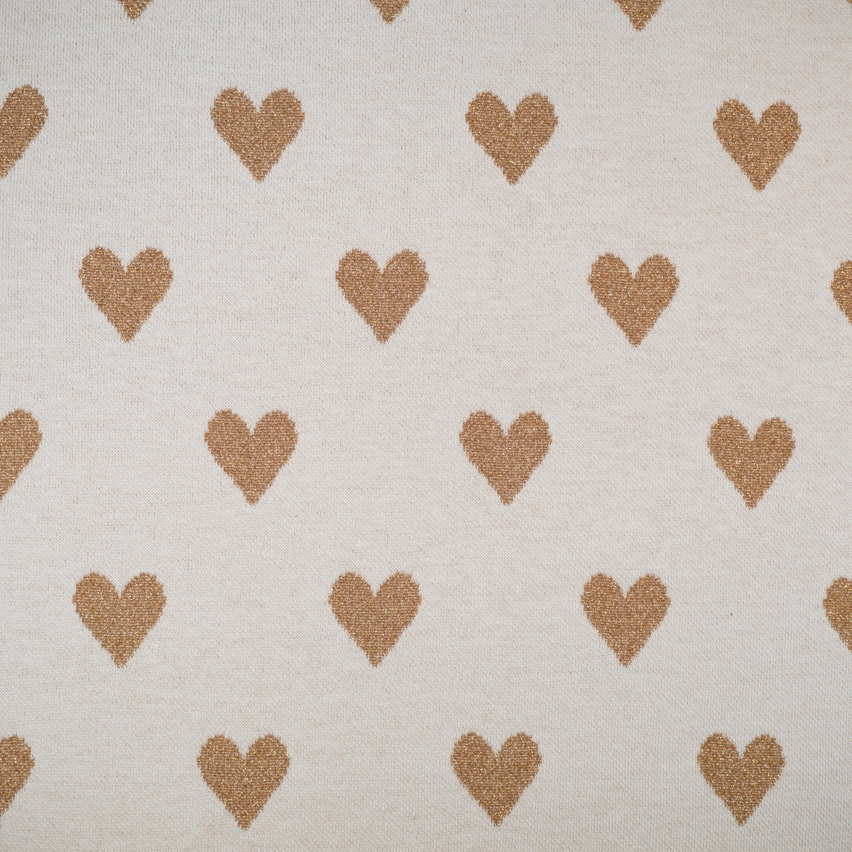 Tissu Jacquard maille - Coeurs lurex - Ecru et Doré