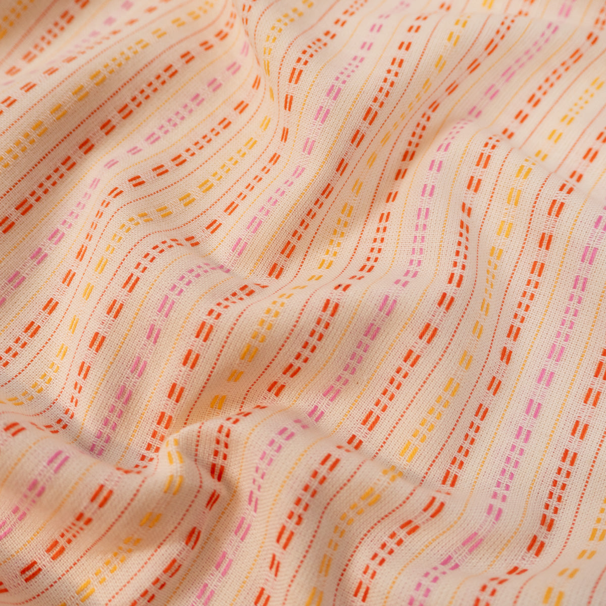 Coloris : Tissage jaune, orange et rose sur fond écru