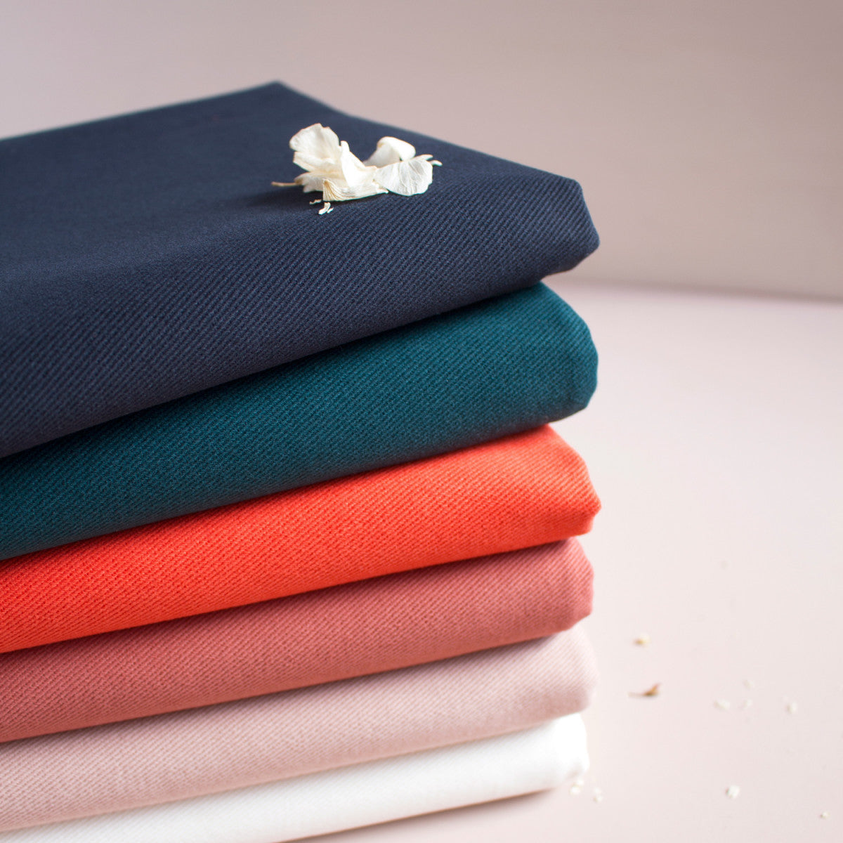 Cette gabardine est souple, épaisse et résistante. Elle sera parfaite pour coudre des pièces structurées telles que des accessoires, sacs et trousses, shorts, pantalons, salopettes, vestes, robes et jupes droites.