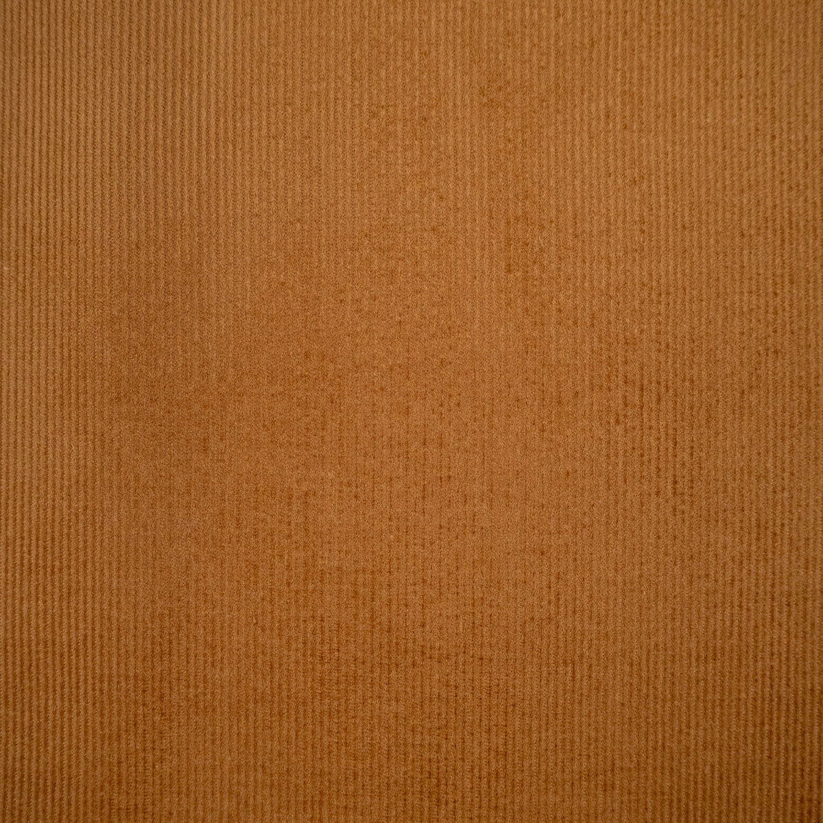 Type de matière : velours côtelé, c'est-à-dire un velours avec des rayures, ici très fines, type milleraies. Velours ras, duveteux, d'épaisseur assez fine et souple. Couper les pièces de préférence dans le même sens pour éviter les effets changeants de coloris (liés aux poils du velours).