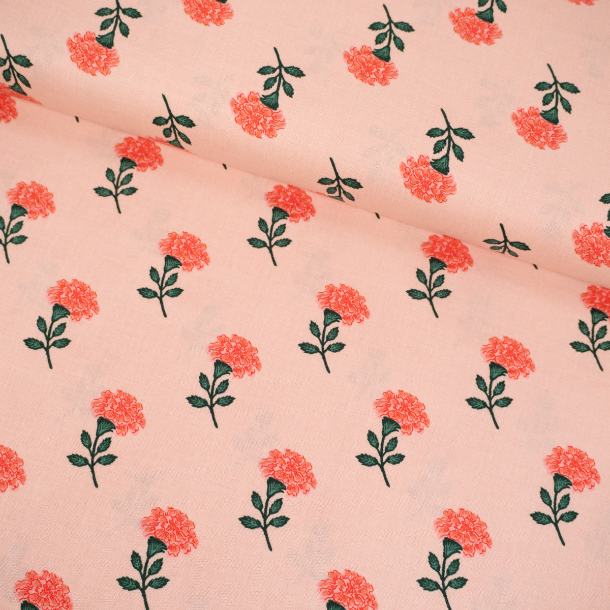 Tissu Popeline - Fleurs indiennes Radha - Rose