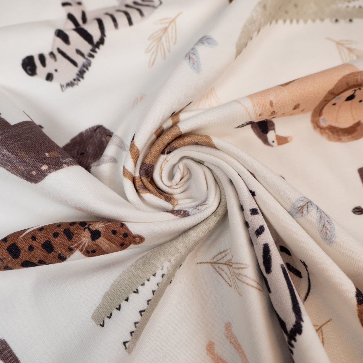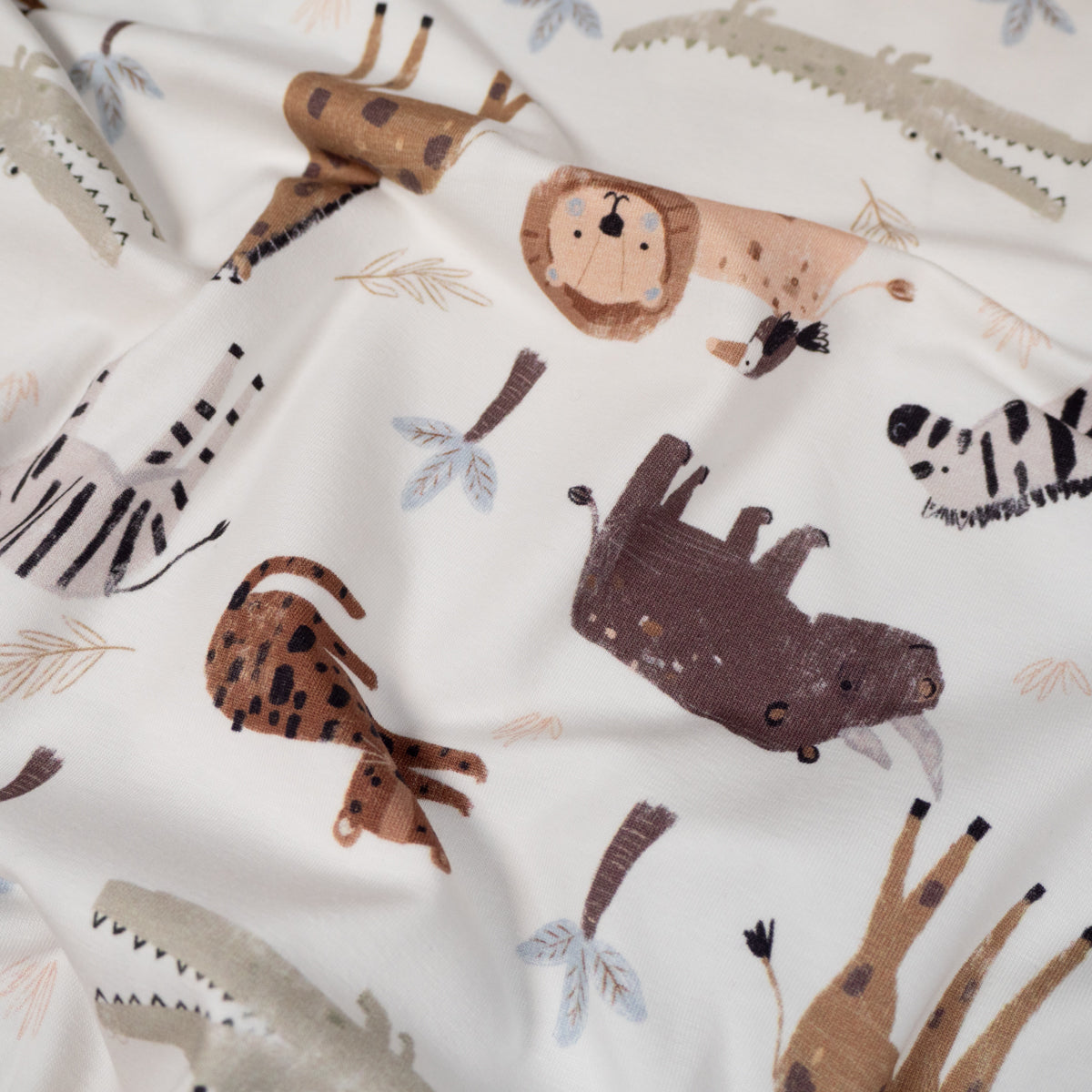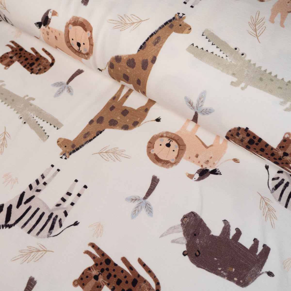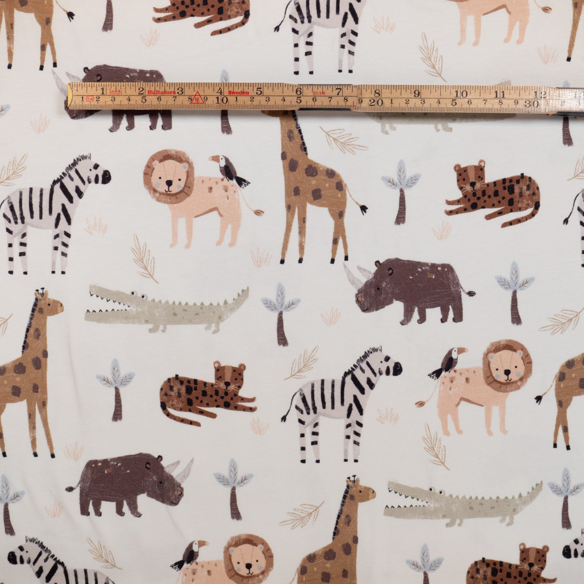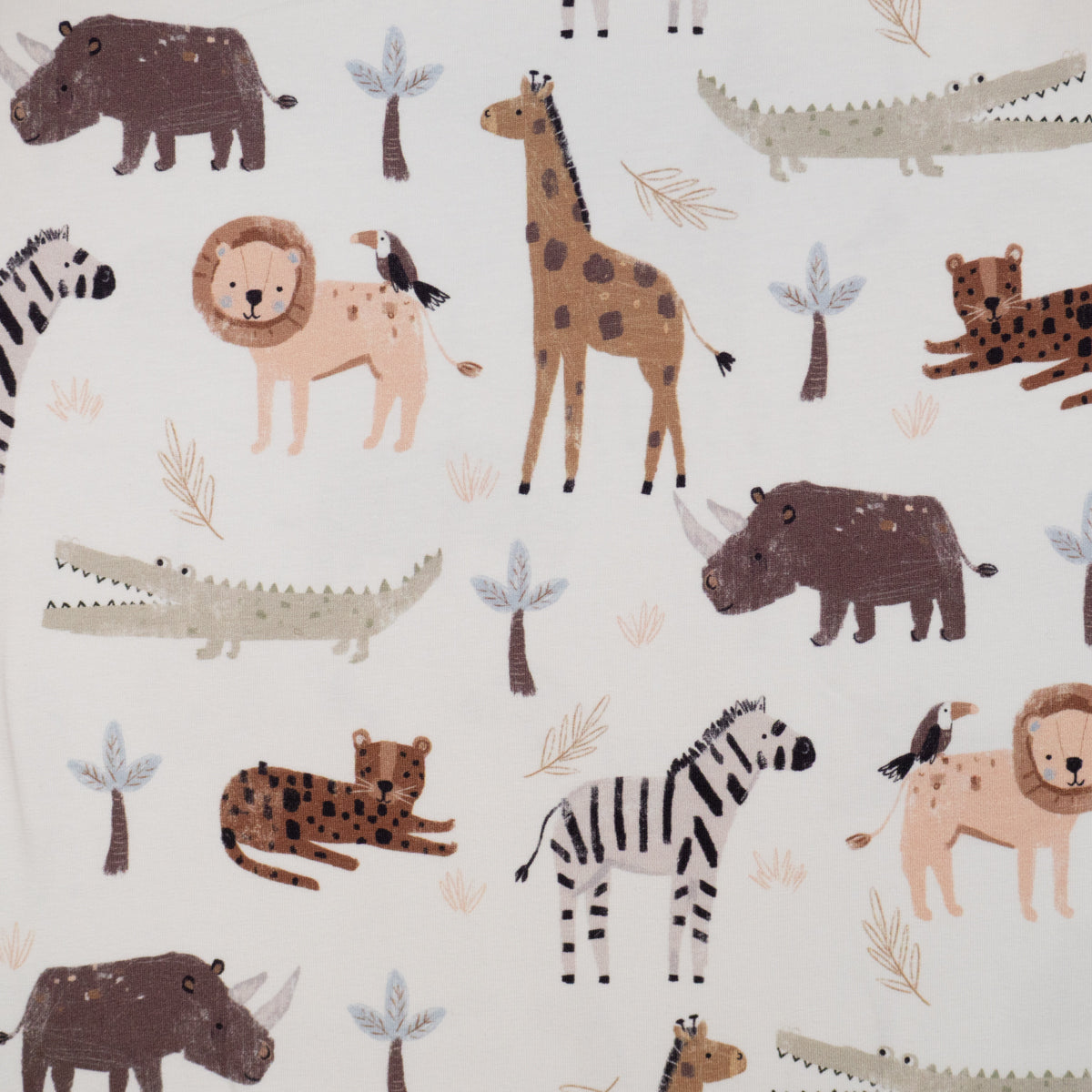 Coloris : motif animaux de le savane de taille moyenne sur fond blanc
