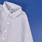 Coloris : Blanc et bleu, fines rayures de 2,5 mm.