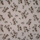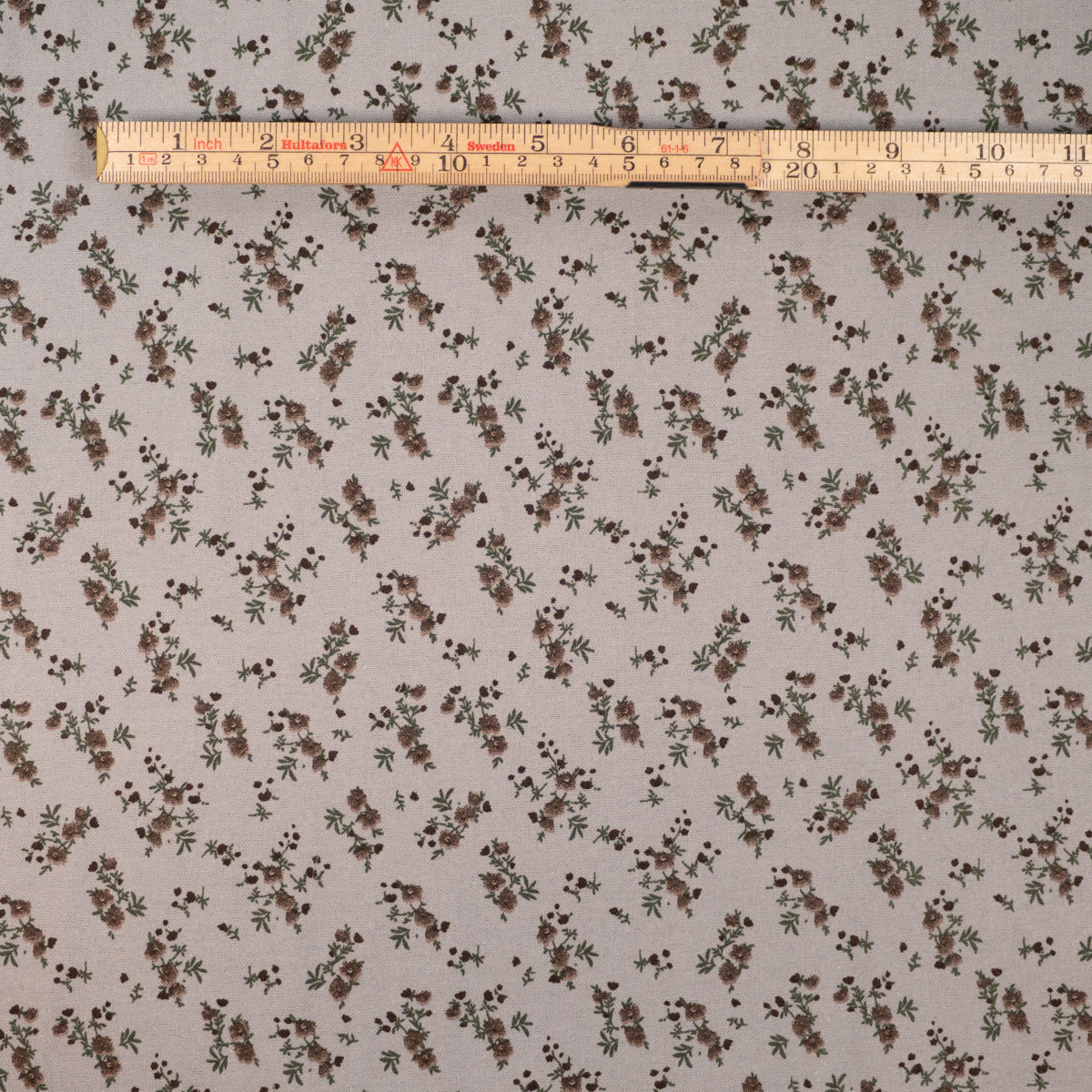 Coloris : fond gris orage, fleurs marron et feuilles vertes foncées
