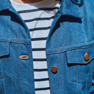 Type de matière : Denim, c’est-à-dire une toile en coton au tissage serré en armure sergé.