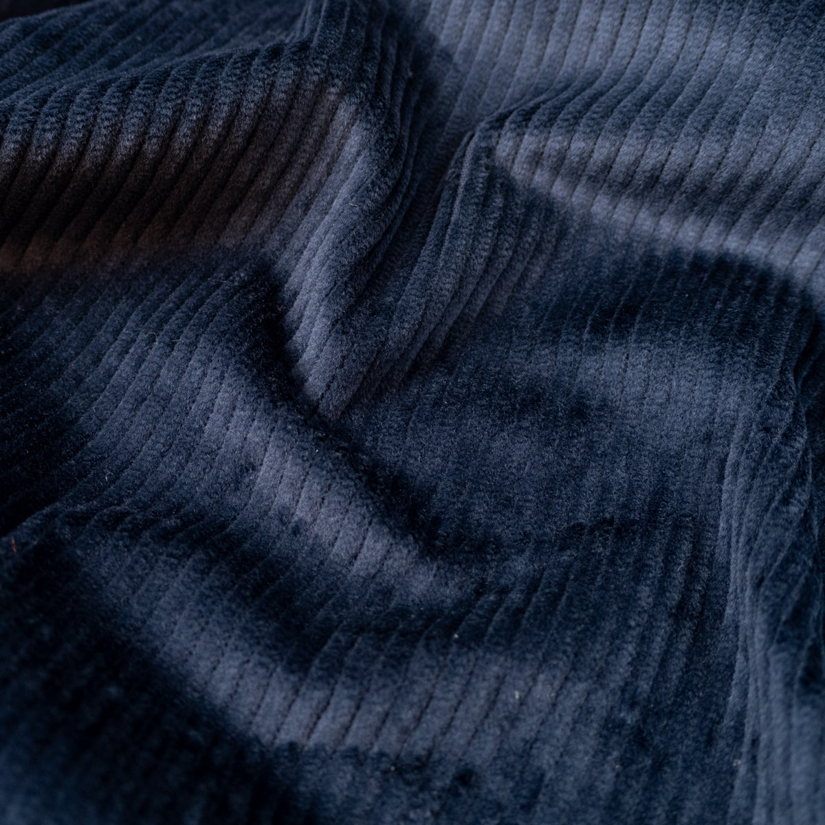 Type de matière : velours côtelé, c'est-à-dire un velours avec des rayures moyennes (6 wales). Velours ras, duveteux, épais. Couper les pièces de préférence dans le même sens pour éviter les effets changeants de coloris (liés aux poils du velours).