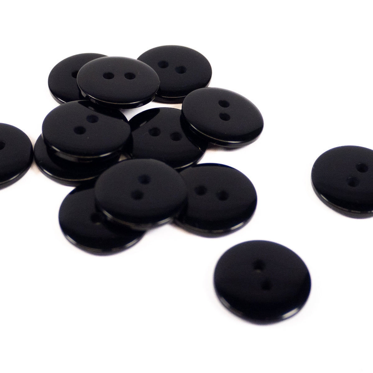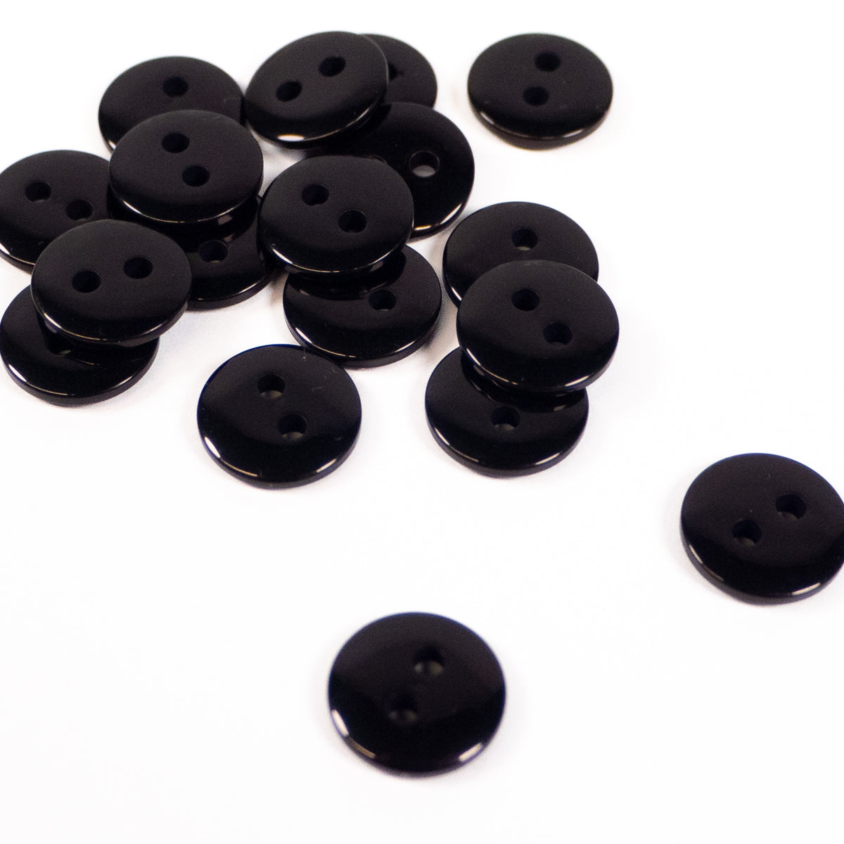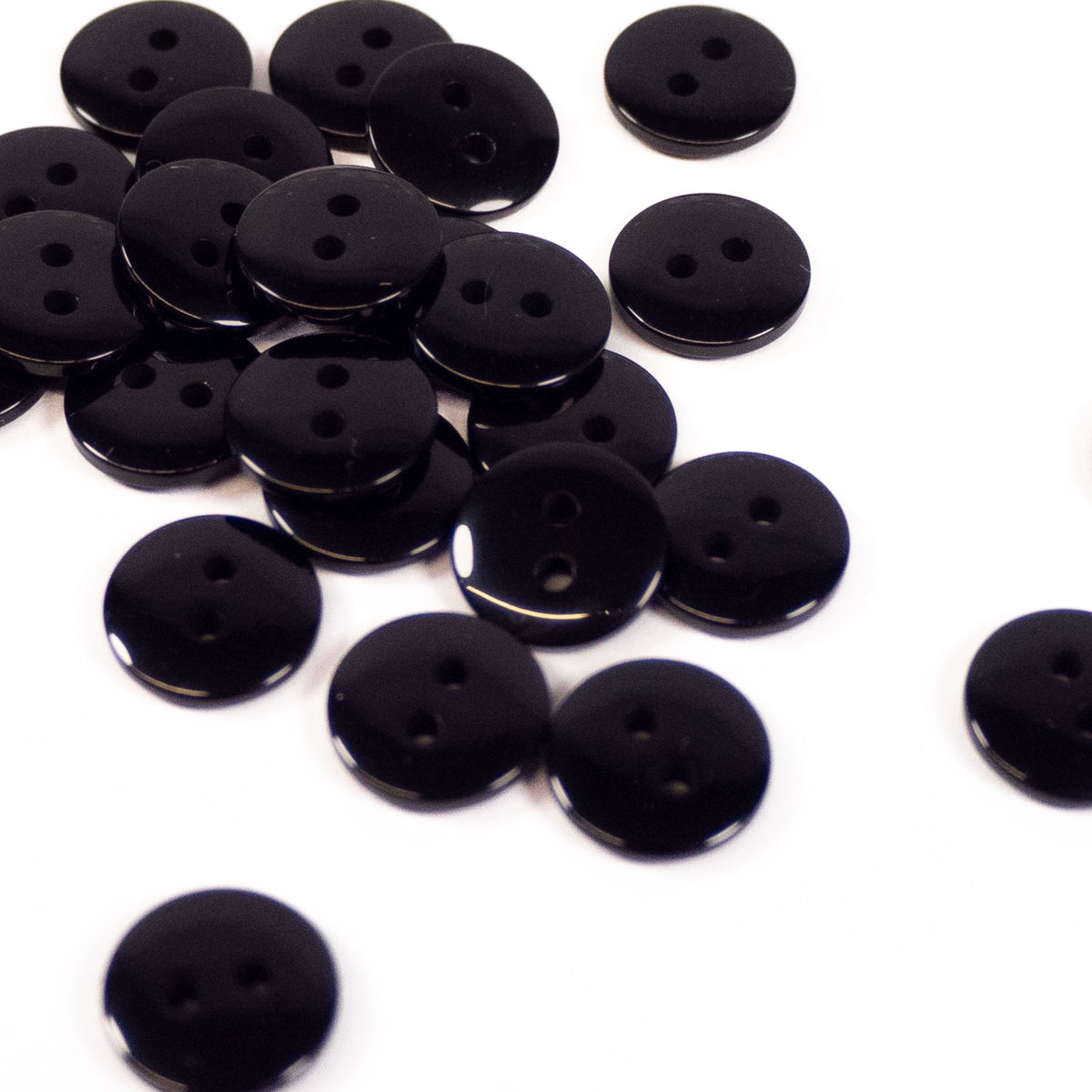 Glänzender 2-Loch Knopf - 10, 12 und 15 mm - Schwarz