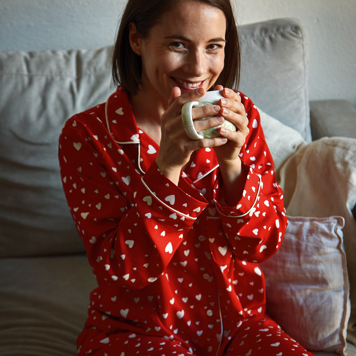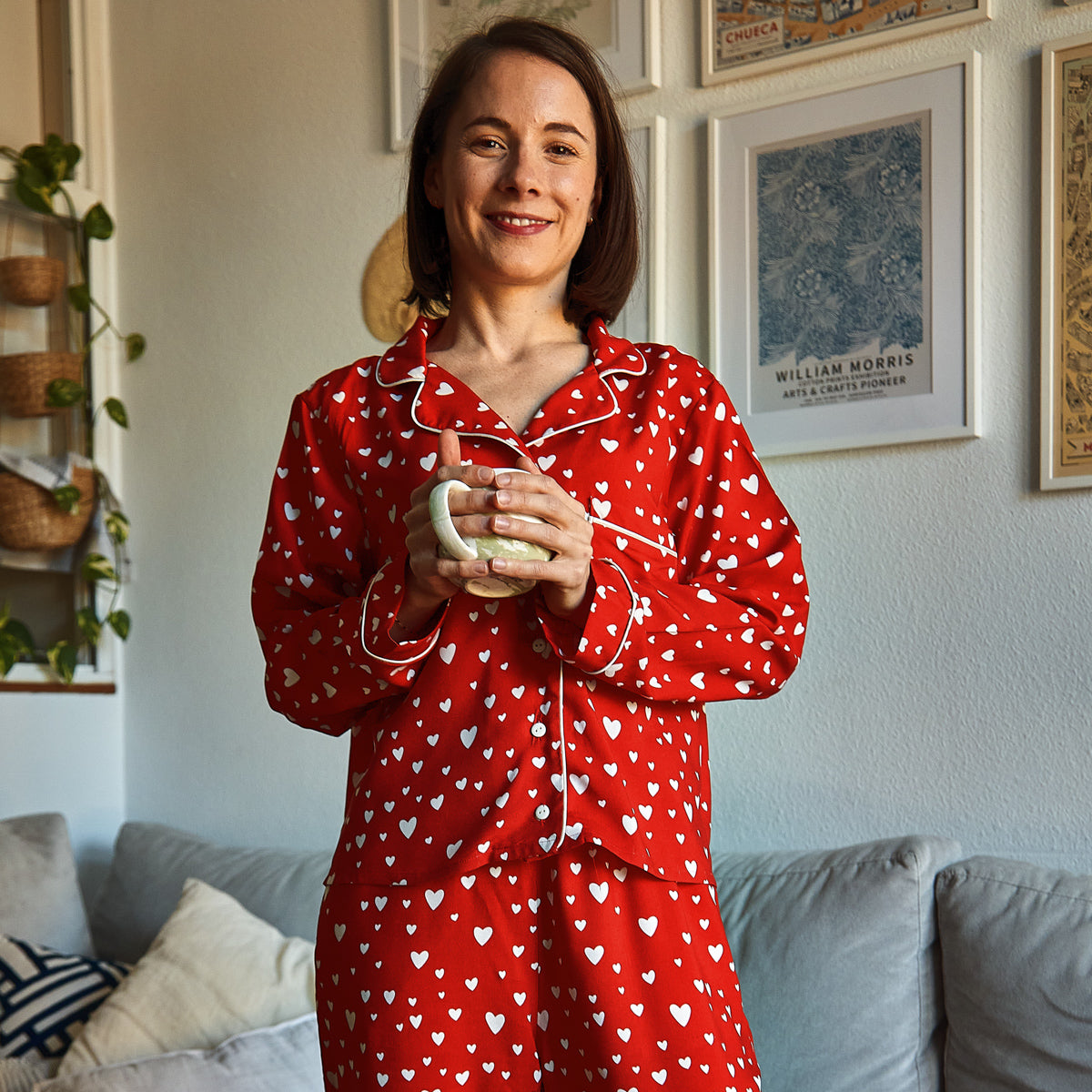 Budapest Damen Pyjama Set - Kleines Herz - Lange Version - 32 bis 46