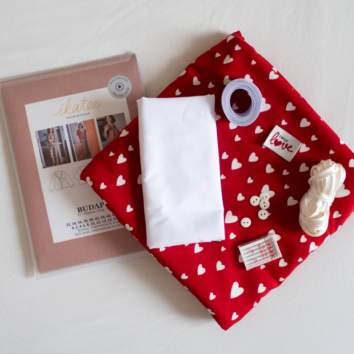 La Fabrique® x ikatee Bio Stretch Jersey© – POP GIRLY – Off-White/Rot