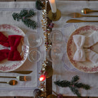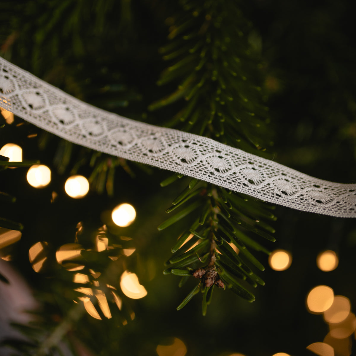 À titre indicatif, nous avons utilisé 1,4 m de dentelle pour le set de table avec l'encadré, et 1,2 m de dentelle pour le set de table avec le nœud.
