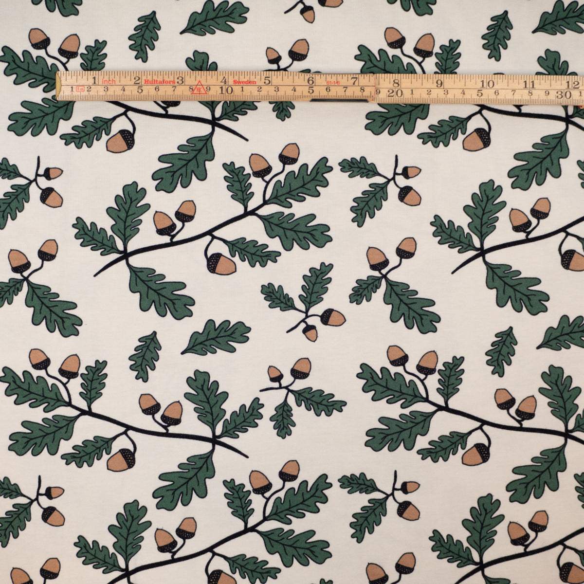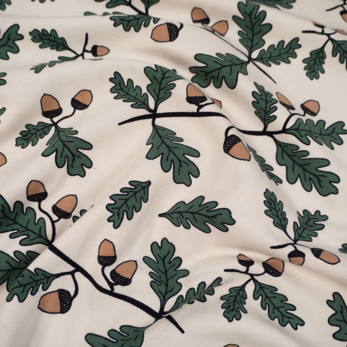 Coloris :Fond beige, motif glands et feuilles de chêne