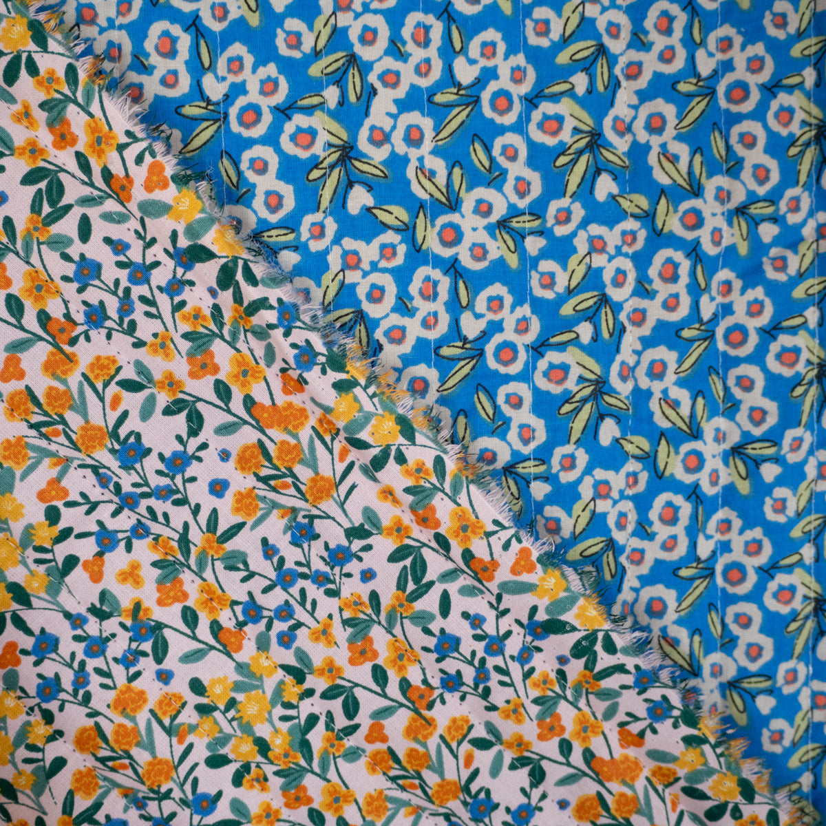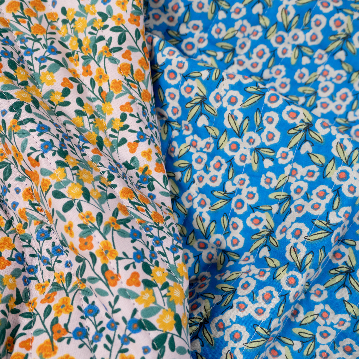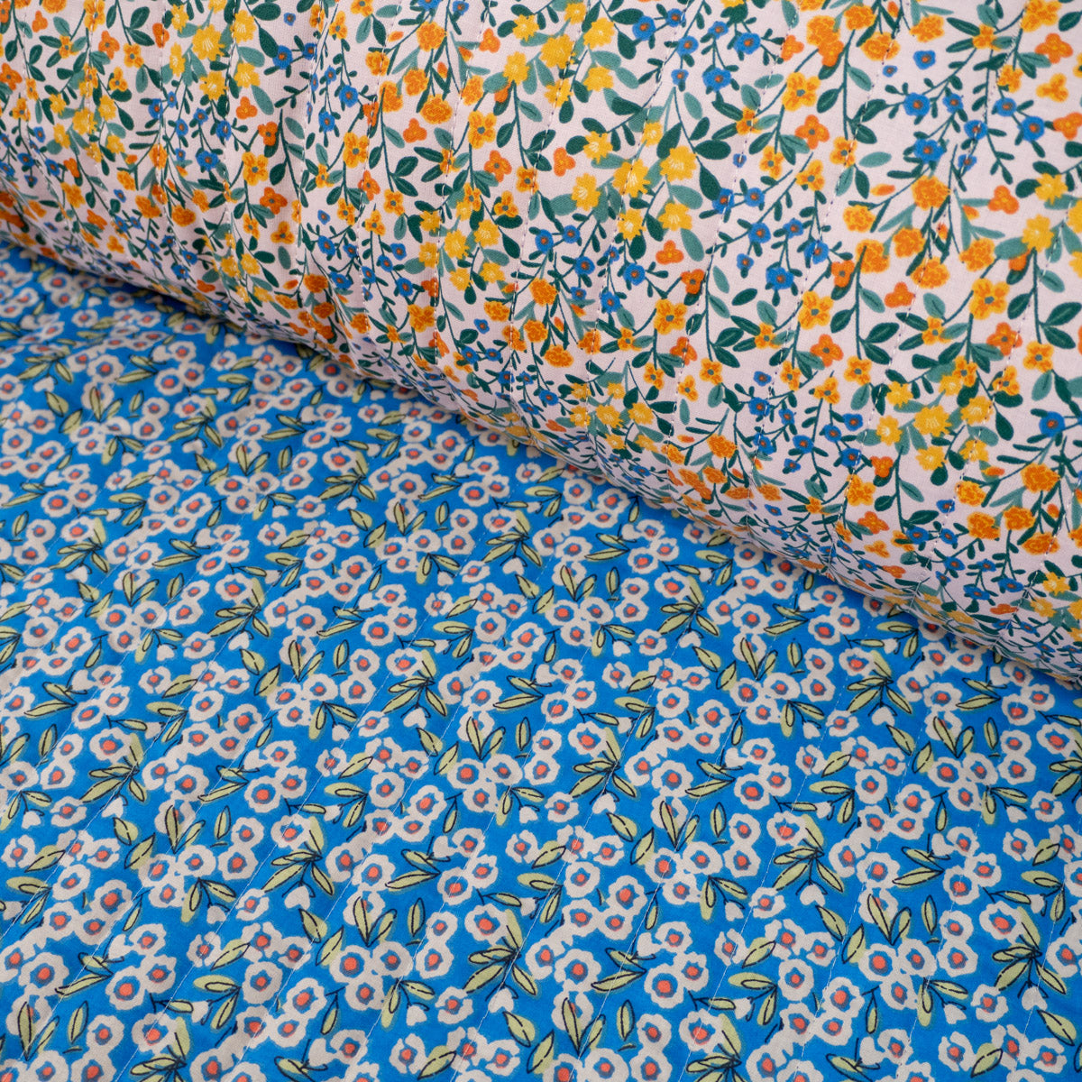 Tissu matelassé réversible - Deniz - Jaune et bleu