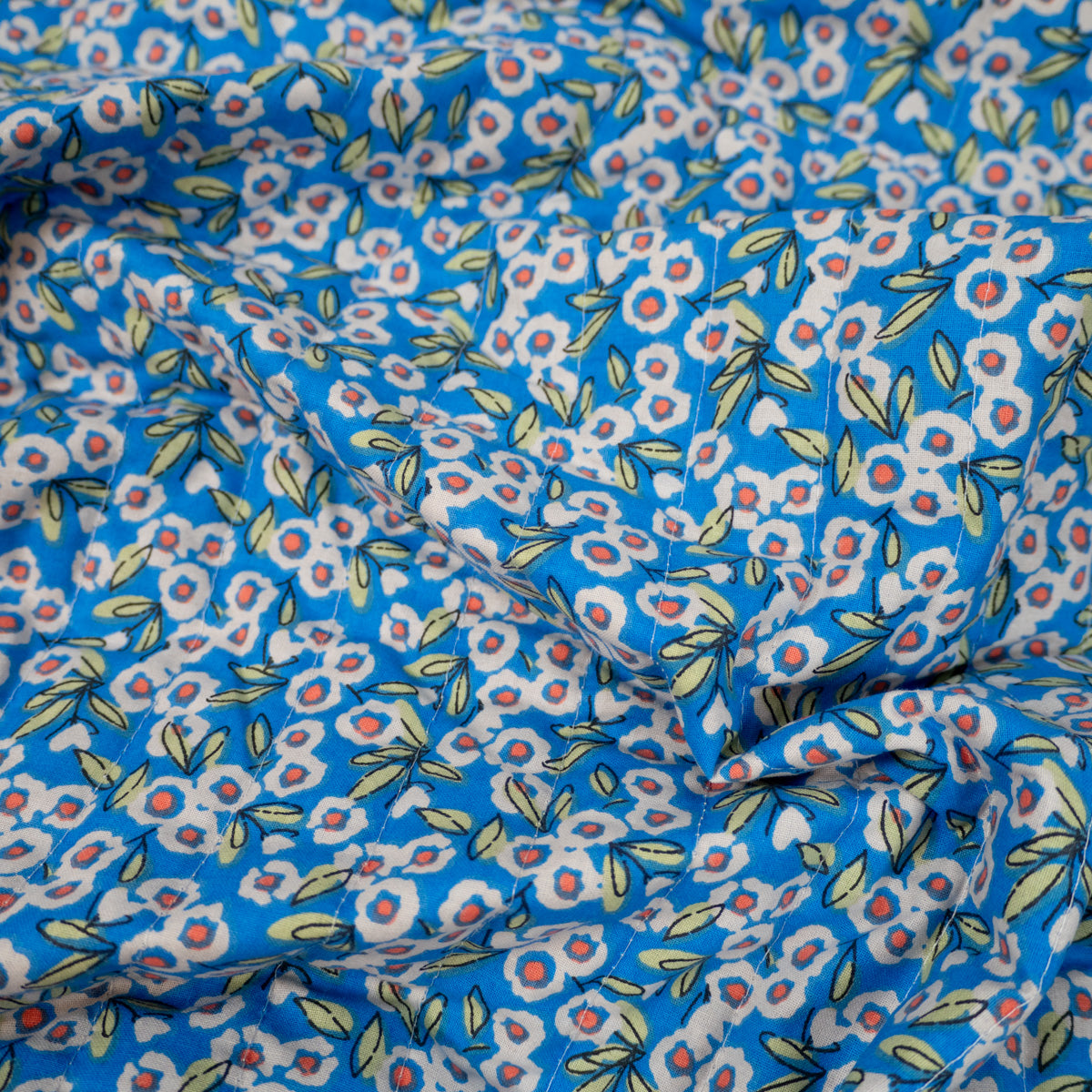Gesteppter Popeline-Stoff – Pooja / Esha – Indigoblau und Gelb