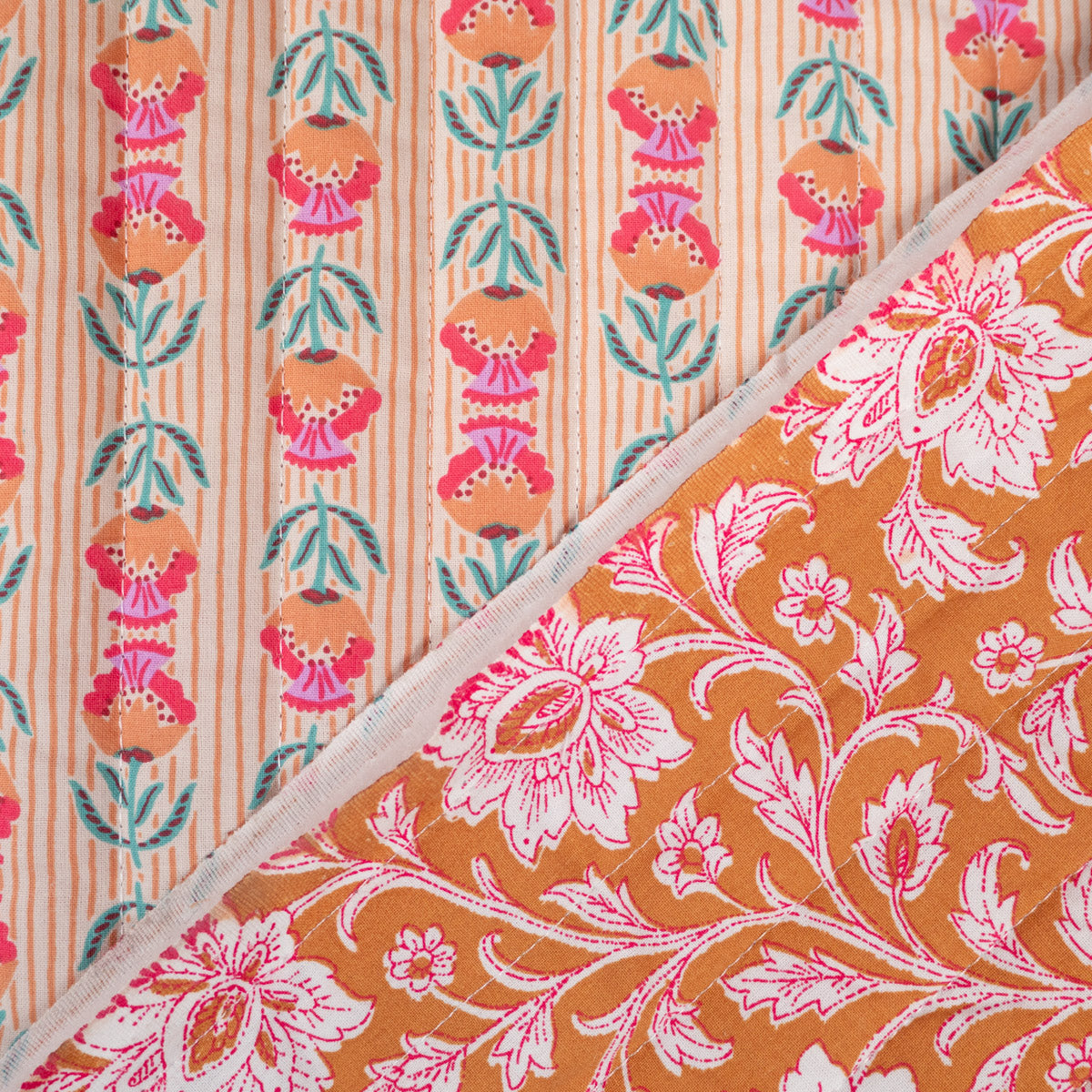 Tissu matelassé réversible - Shira - Camel et jaune