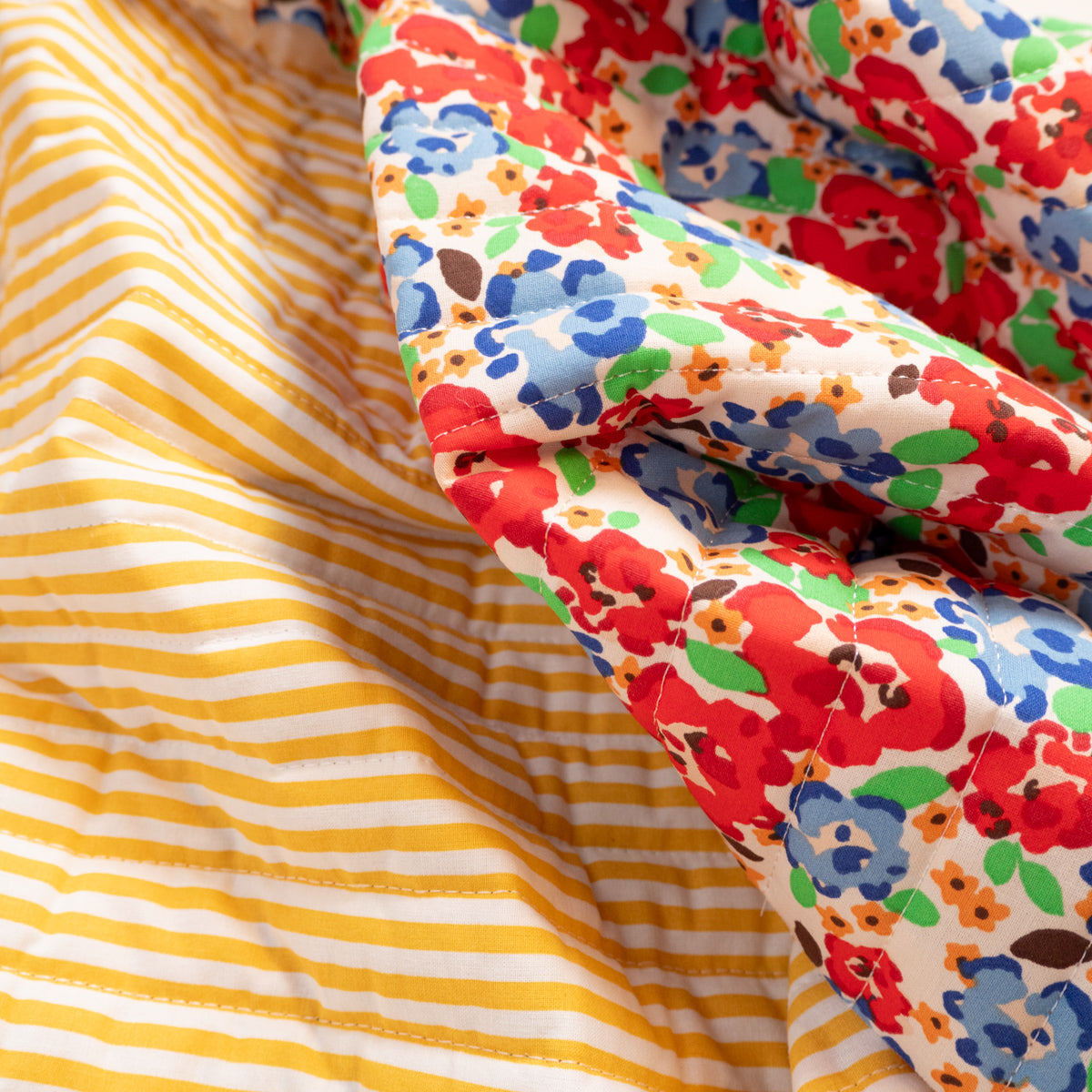 Tissu matelassé réversible - Odalie - Rouge et jaune