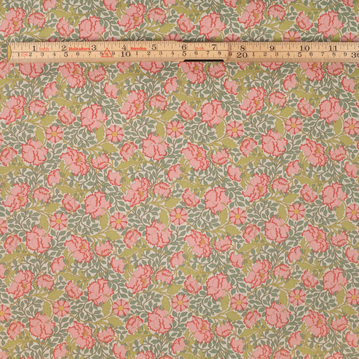 Farbe: Rosa- und salbeigrünes Blumenmuster auf ecrubeigem Hintergrund
