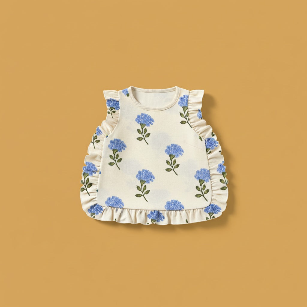 Farbe: Blaues Blumenmuster auf beigem Hintergrund