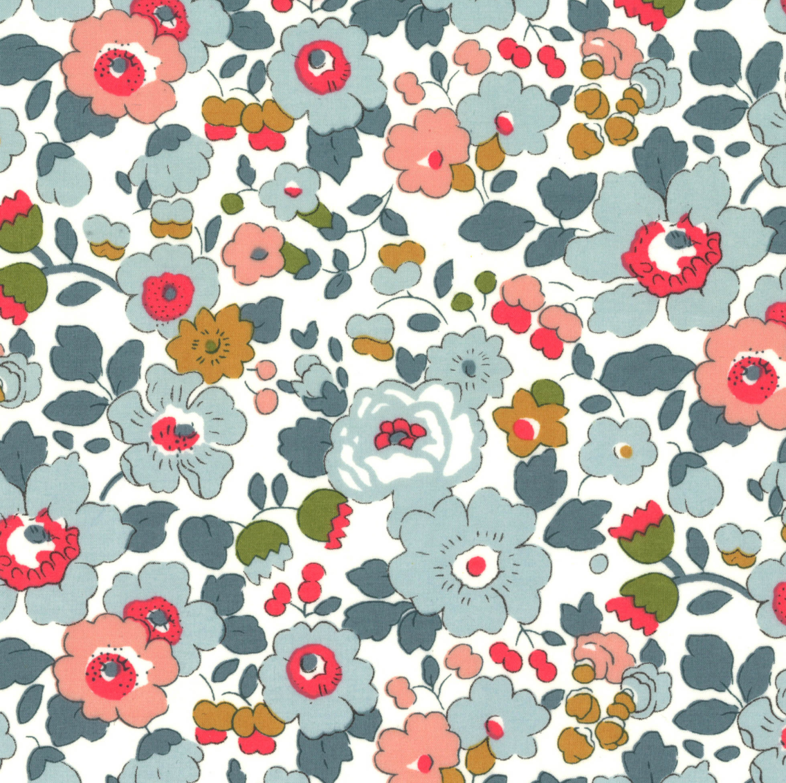 Coloris et motifs : Motif Betsy, fond écru avec fleurs bleu grise