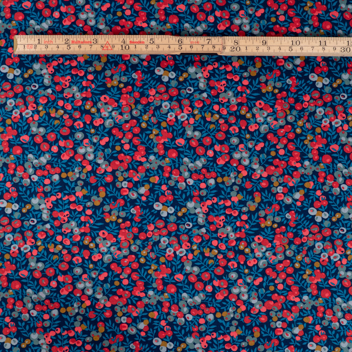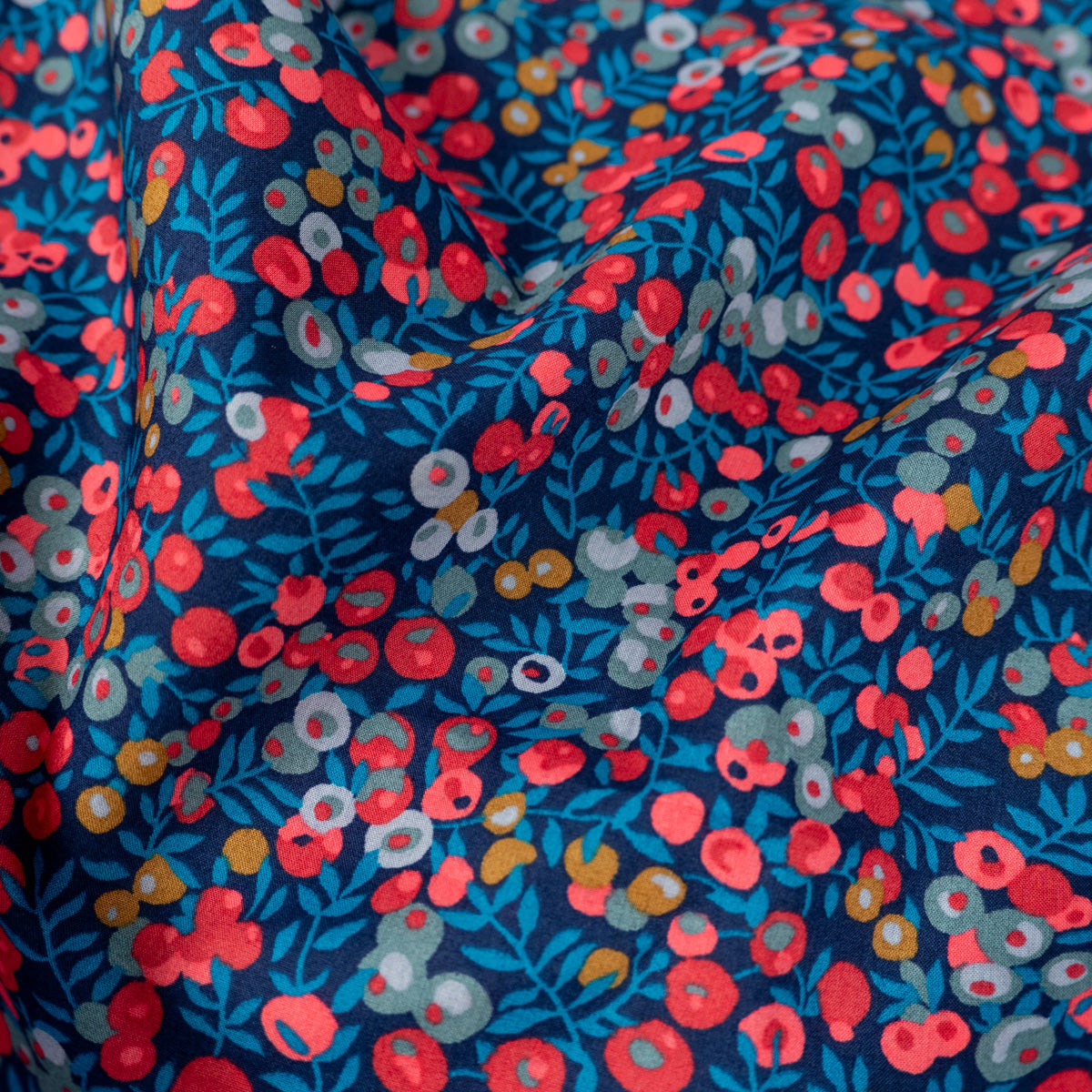 Coloris et motifs : Motif Wiltshire, fond bleu nuit, motifs floral rouge