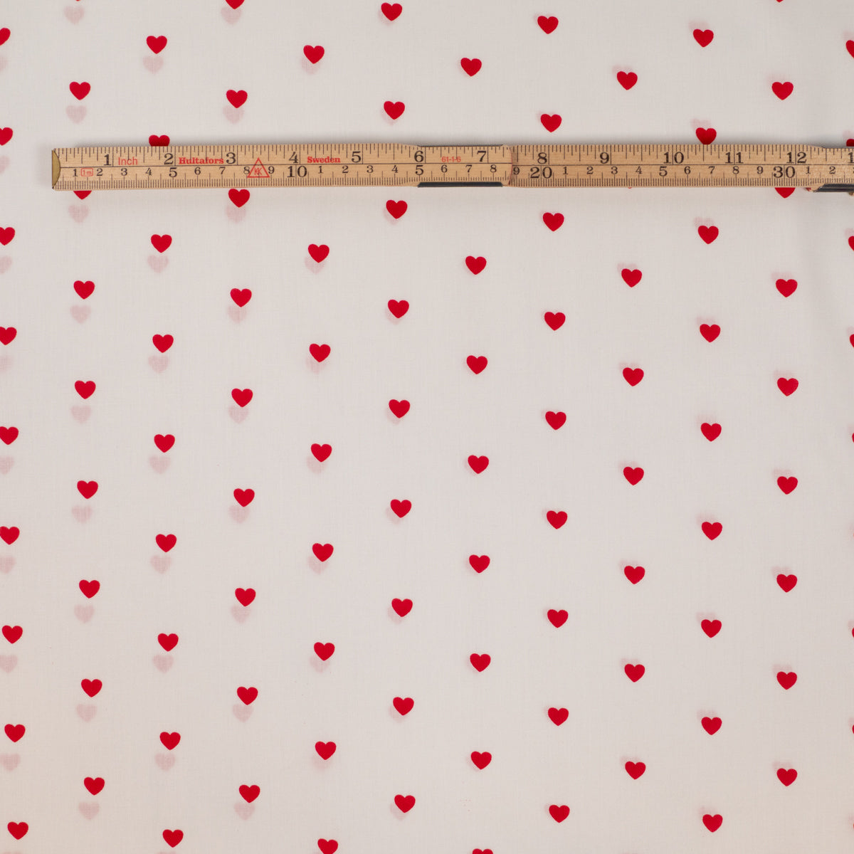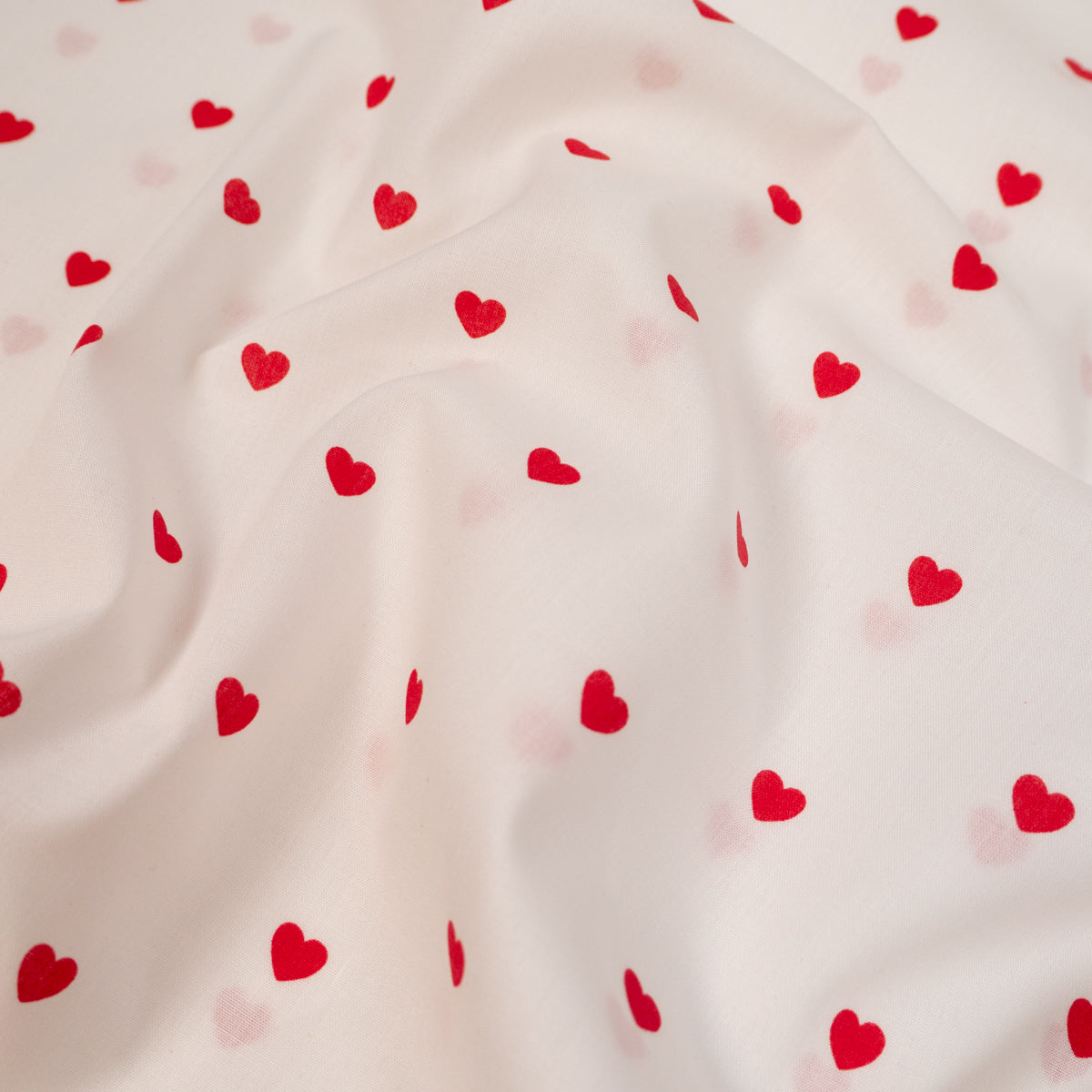 Popeline-Stoff – Kleine rote Herzen – Weiß