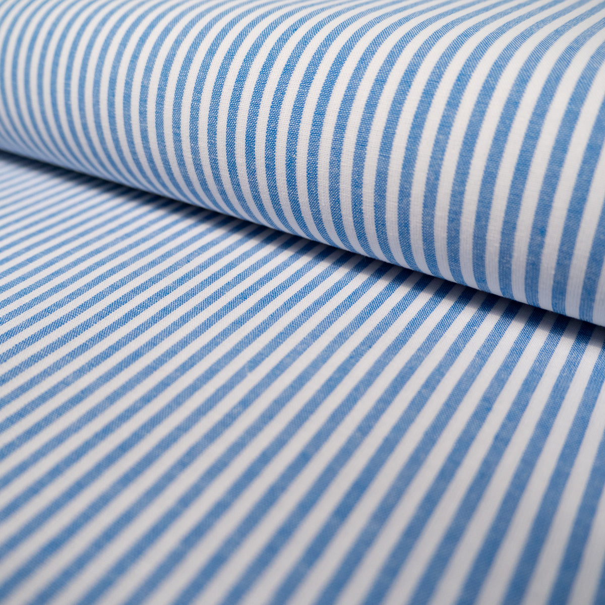 Popeline Stoff - Streifen - Himmelblau und Weiß