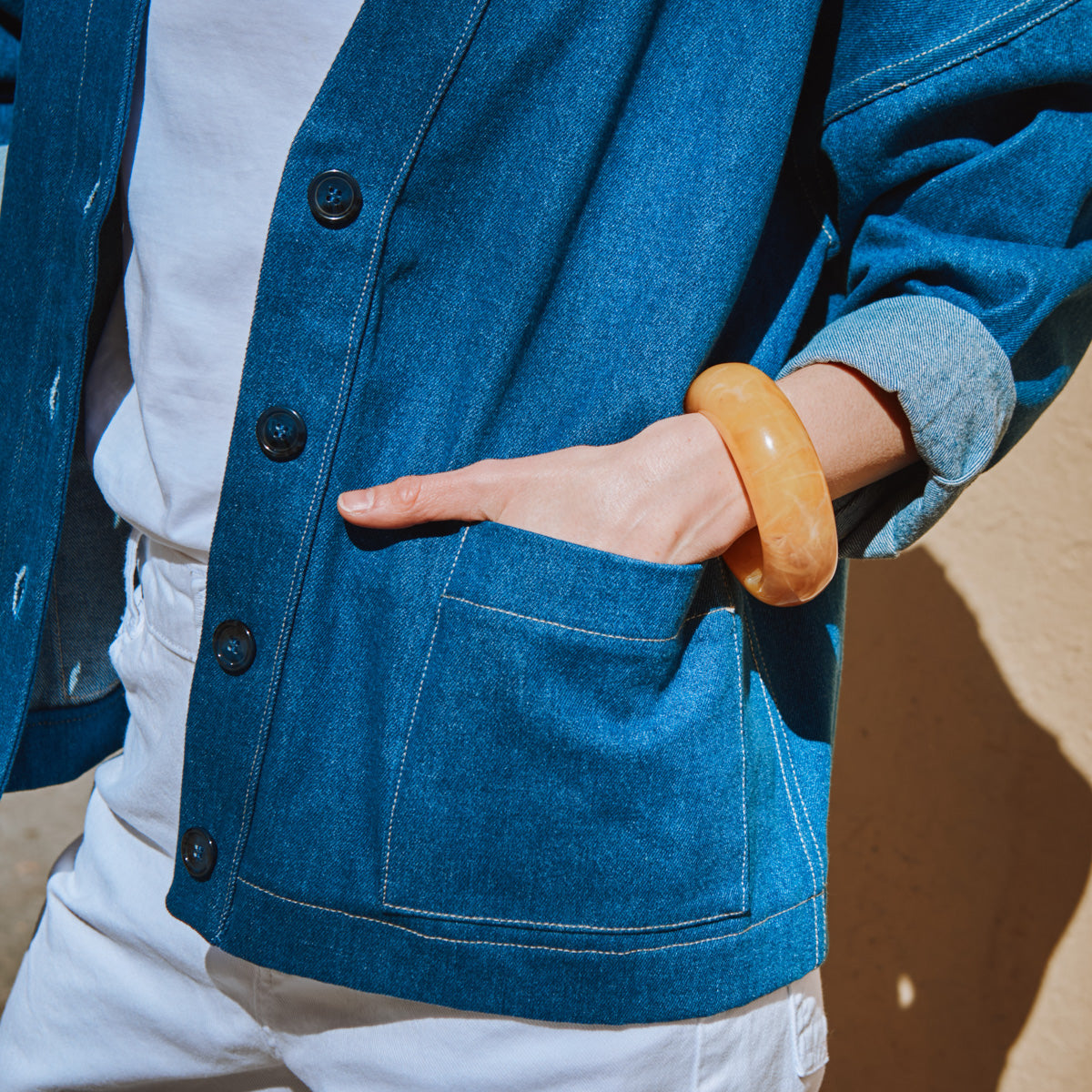 Chambray ist ein feiner Stoff, meist Baumwolle, der aus einem Gewirr weißer und blauer Fäden besteht, was ihm sein meliertes Aussehen verleiht. Weich und fließend bietet Chambray hohen Tragekomfort.