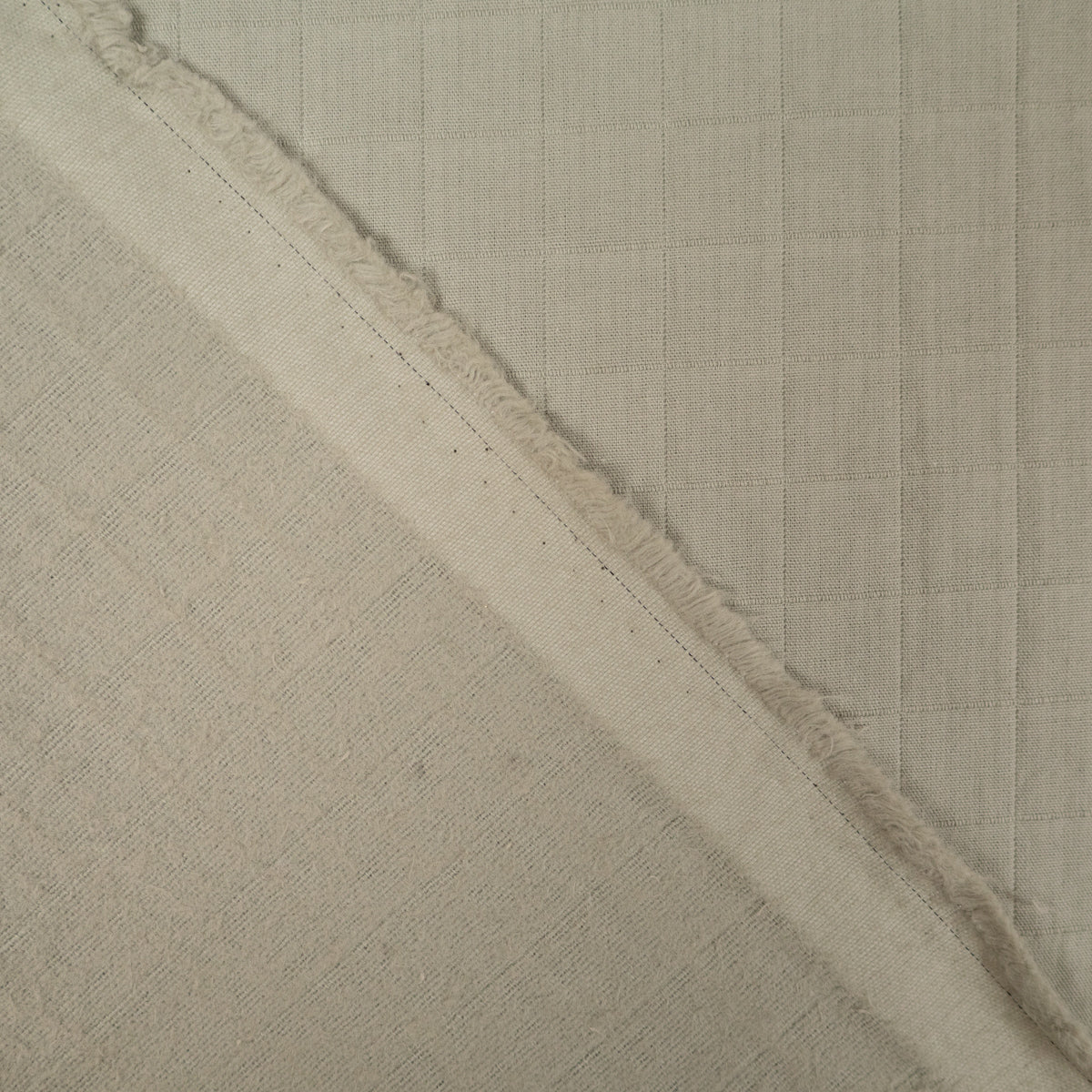 Type de matière : un coton matelassé : sur l'endroit, de jolis carreaux se dessinent tout en relief et sur l'envers, le coton est légèrement gratté et ne nécessite donc pas de doublure.