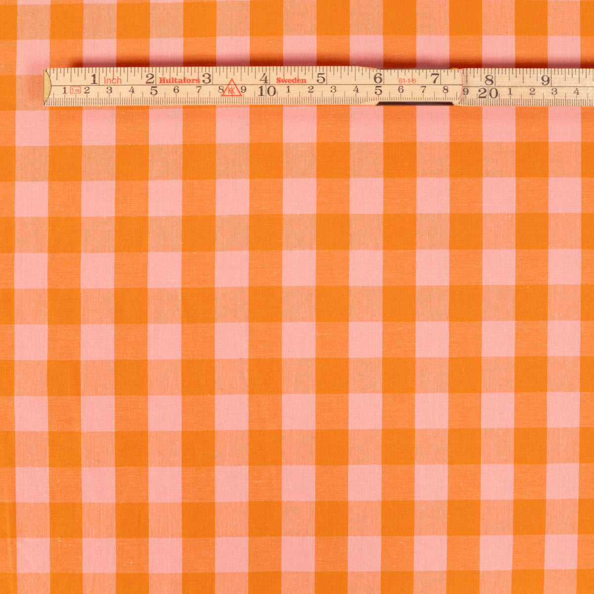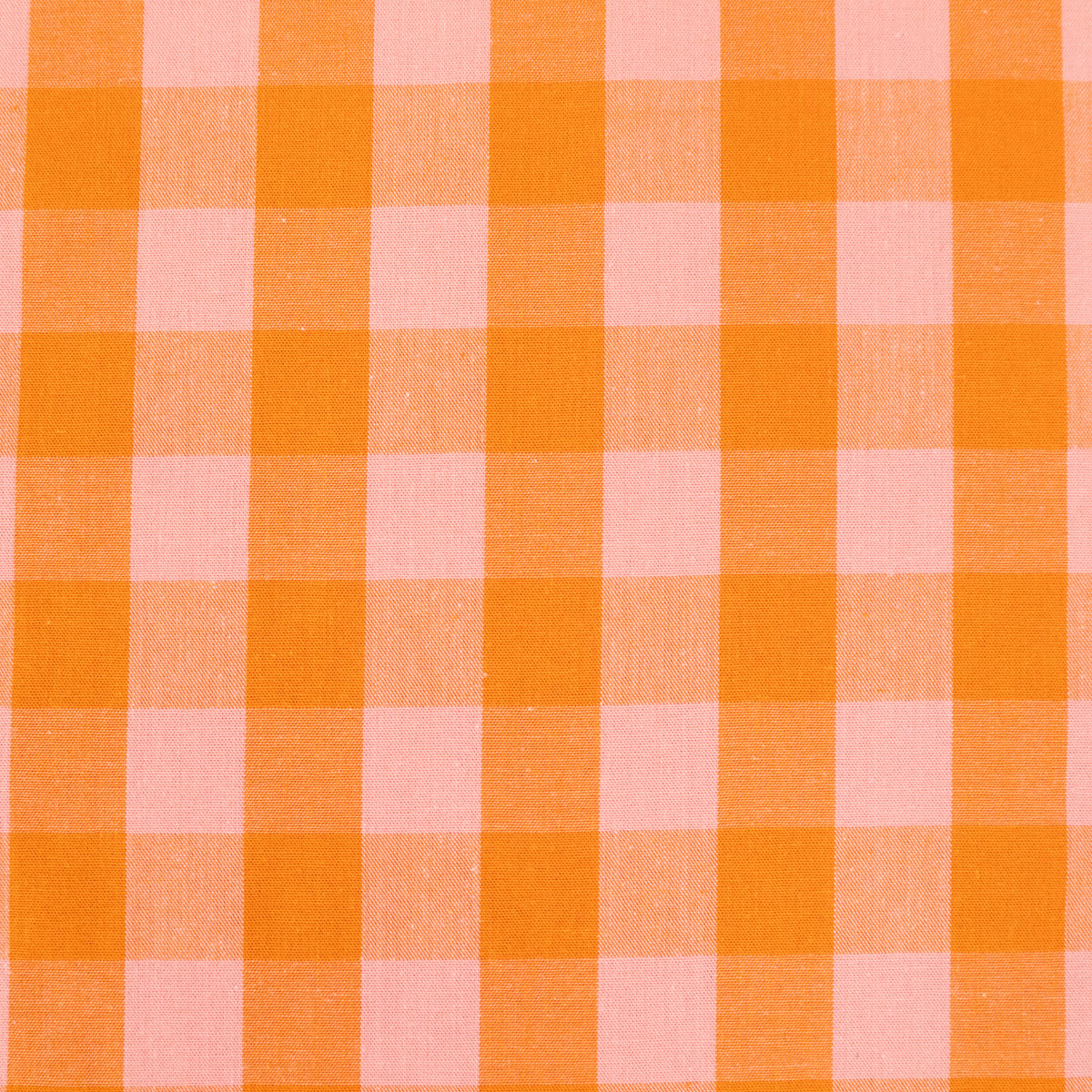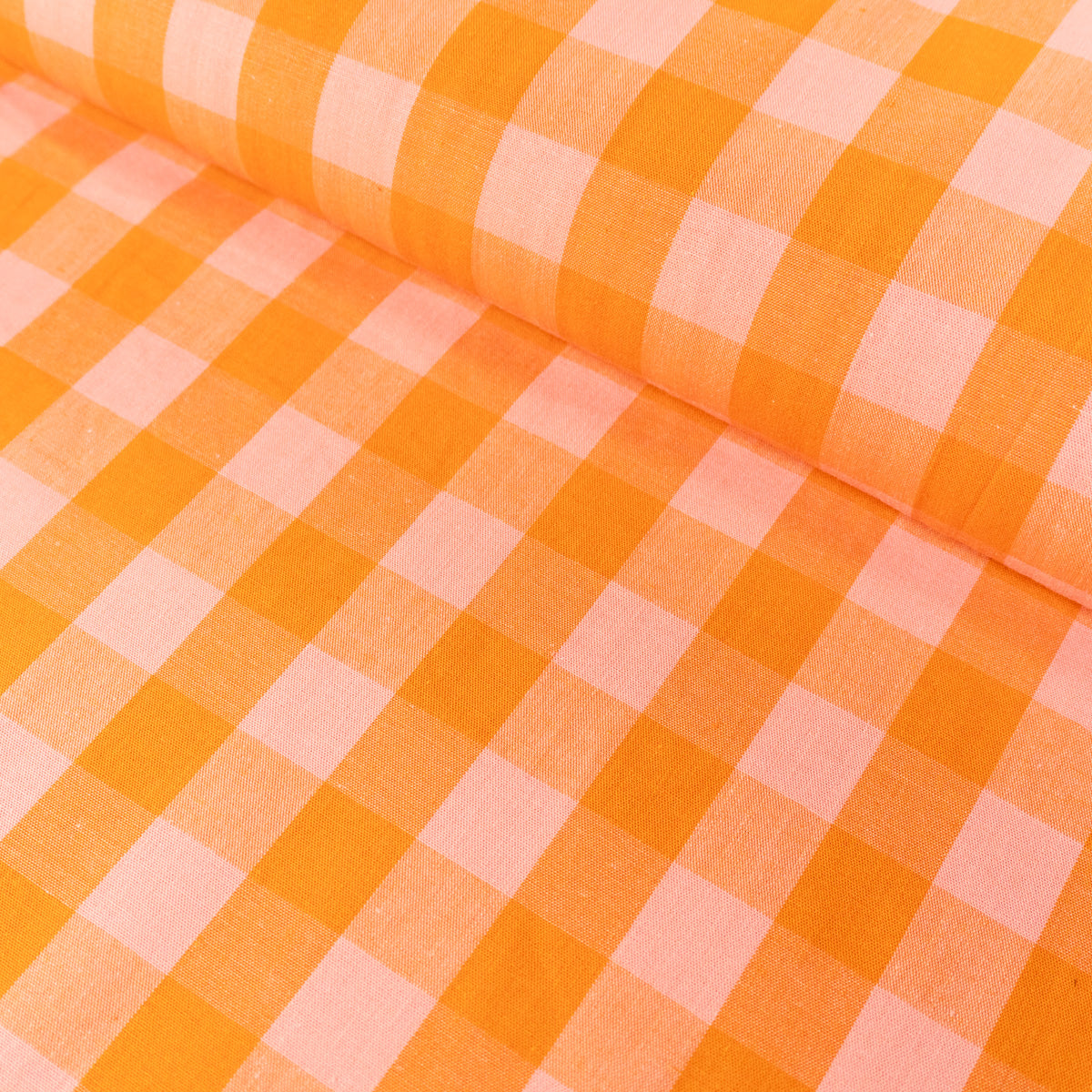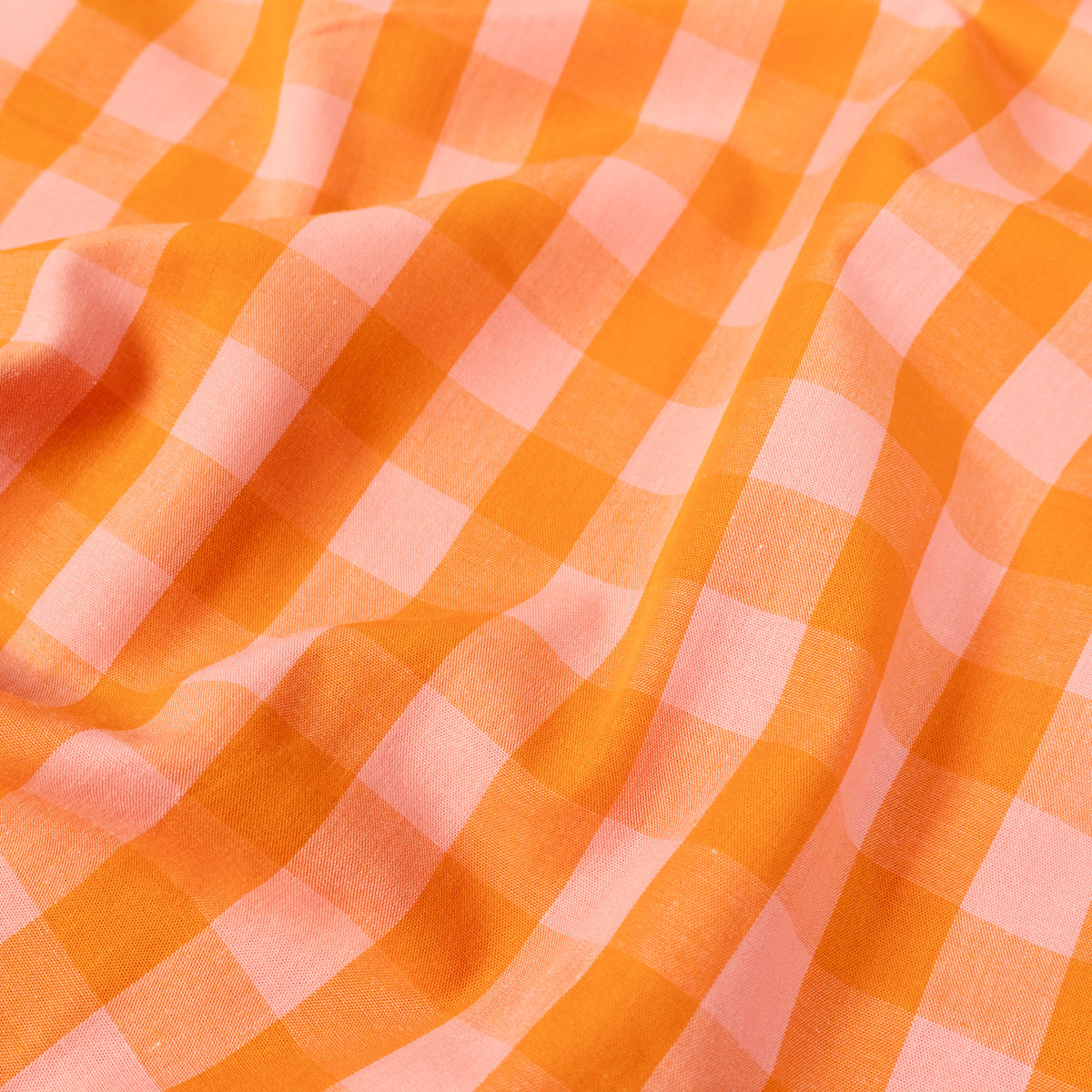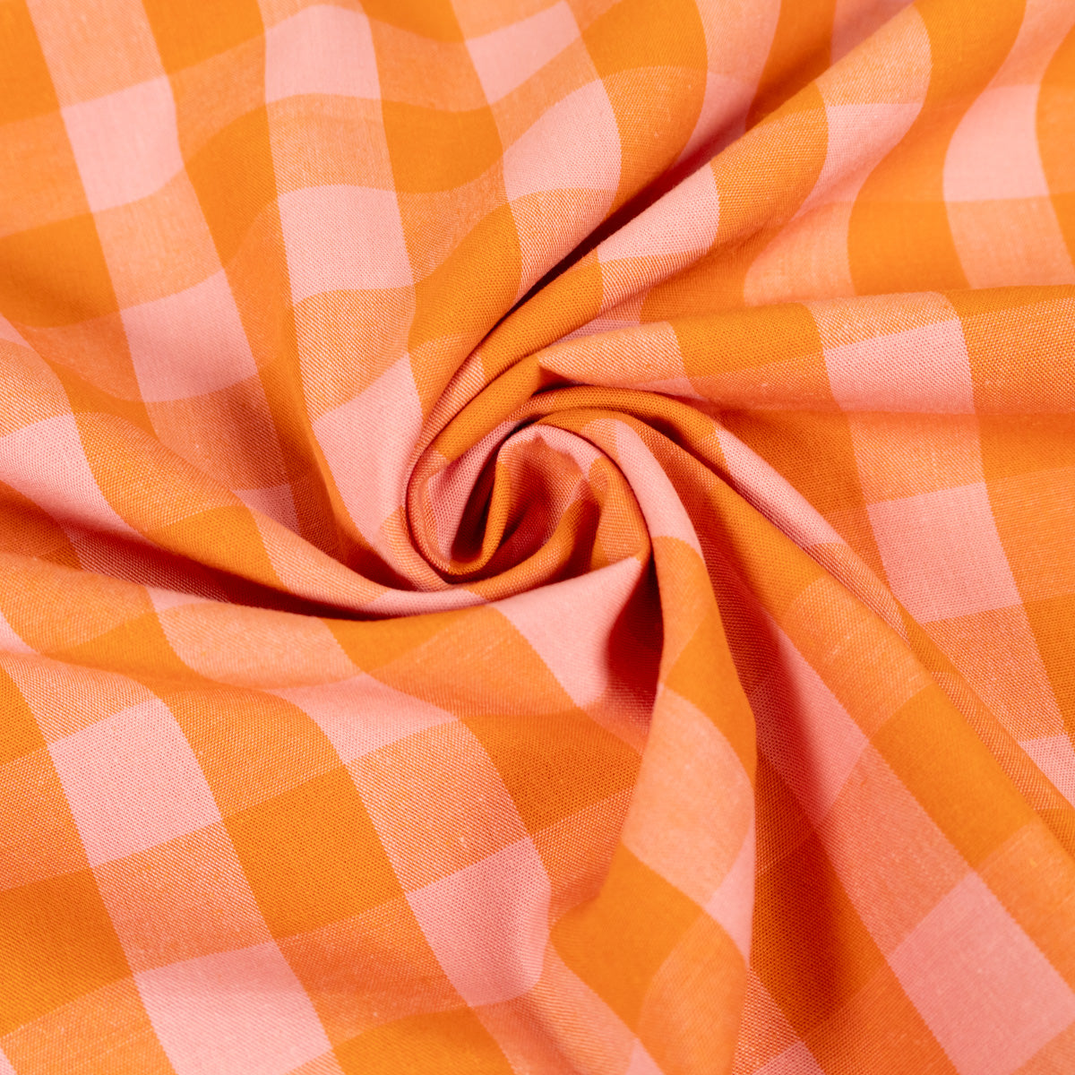 Coupon Tissu Popeline - Vichy grands carreaux - Orange et saumon