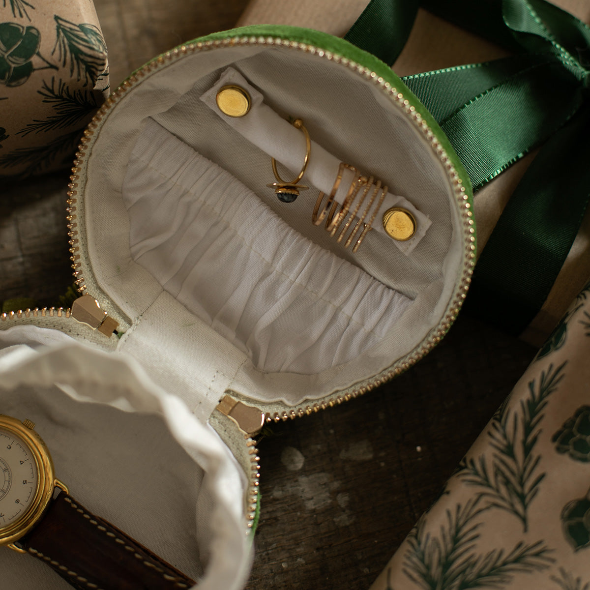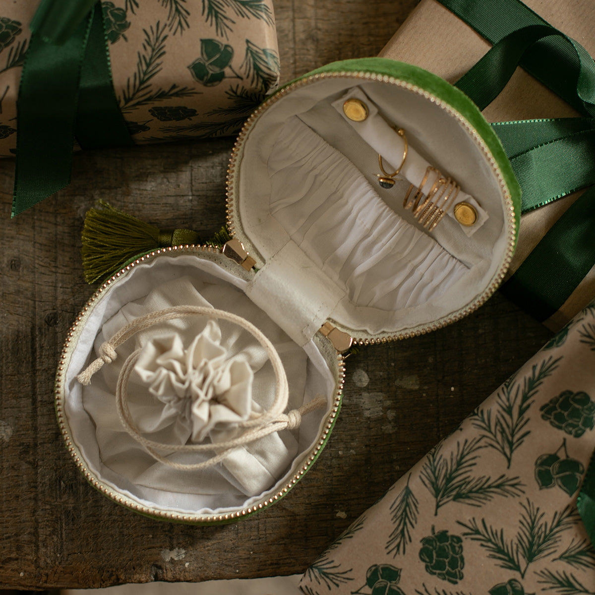 Kit fournitures écrin à bijoux Alexandrie - Velours ras - Vert mousse