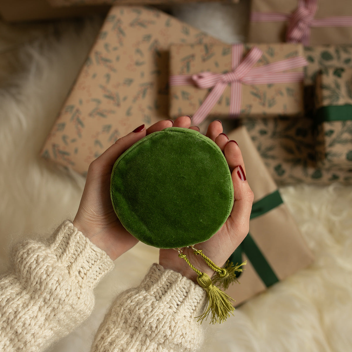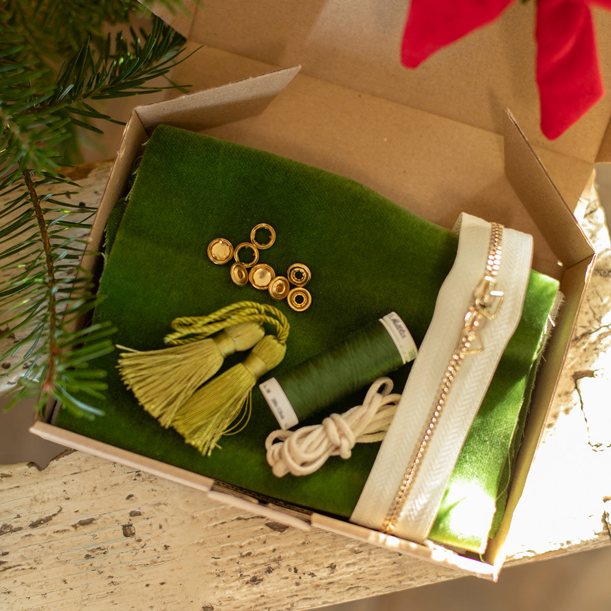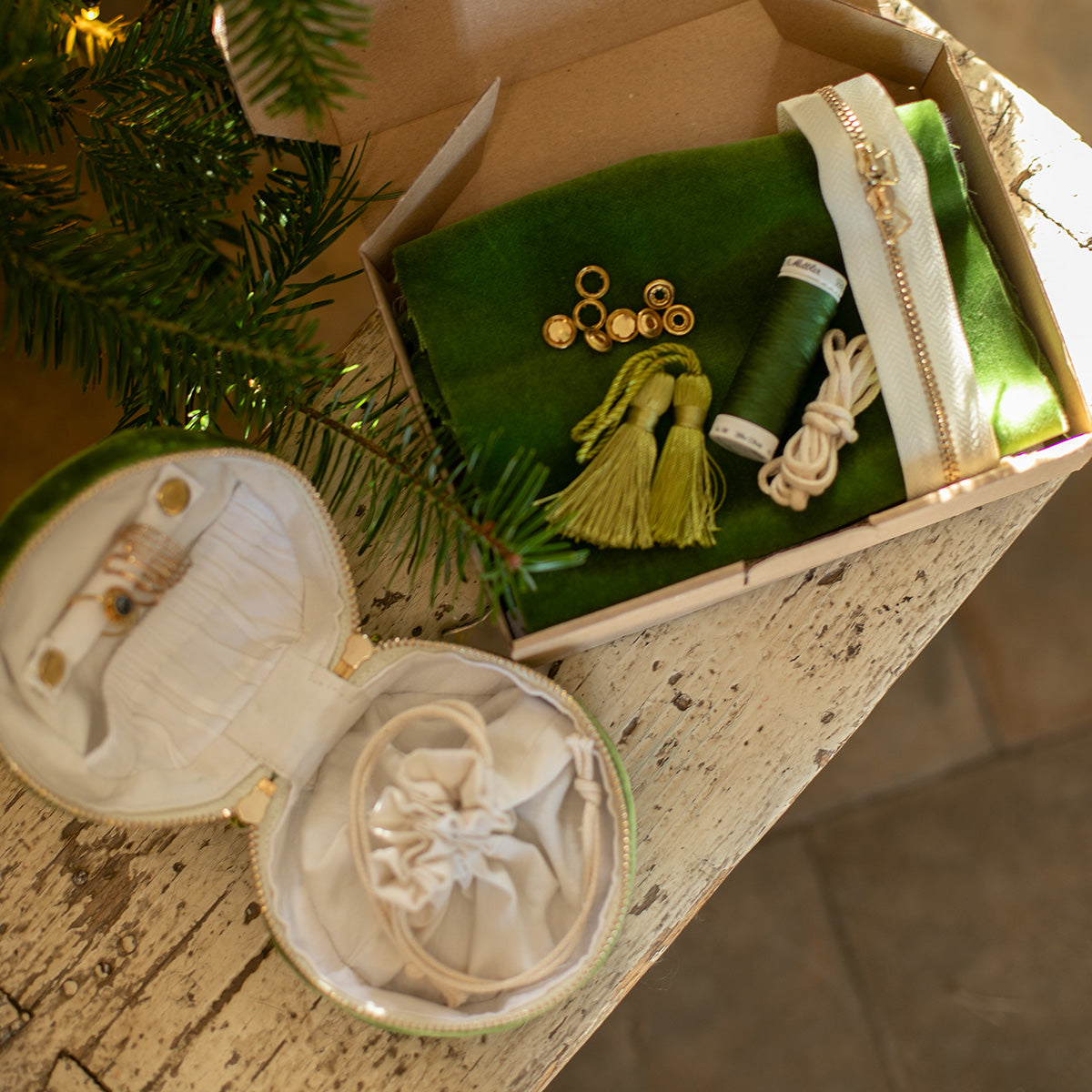 Ce kit comprend tout le nécessaire pour coudre un écrin à bijoux en velours ras vert mousse de très belle qualité, sublimé par de jolis pompons délicats. Un projet couture raffiné et minutieux, idéal pour celles et ceux qui aiment les finitions soignées et les accessoires élégants. Un petit écrin doux et précieux, parfait pour ranger vos bijoux ou offrir une création faite main pleine de charme.