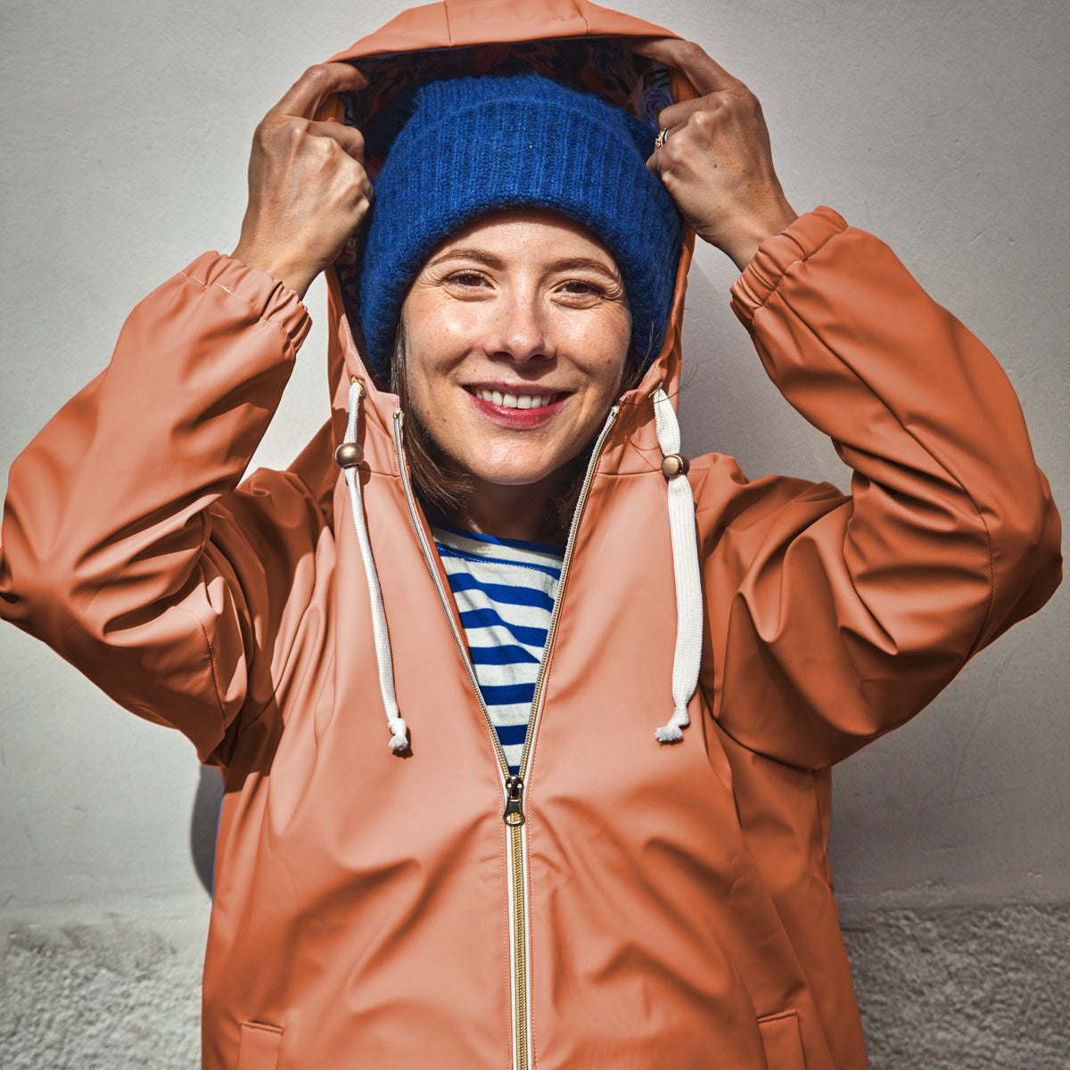 Ce tissu aspect « ciré » est imperméable, résistant et coupe-vent. Il est très léger, doux et mat et se prêtera parfaitement à la couture de vestes, manteaux, ponchos, sacs et accessoires.