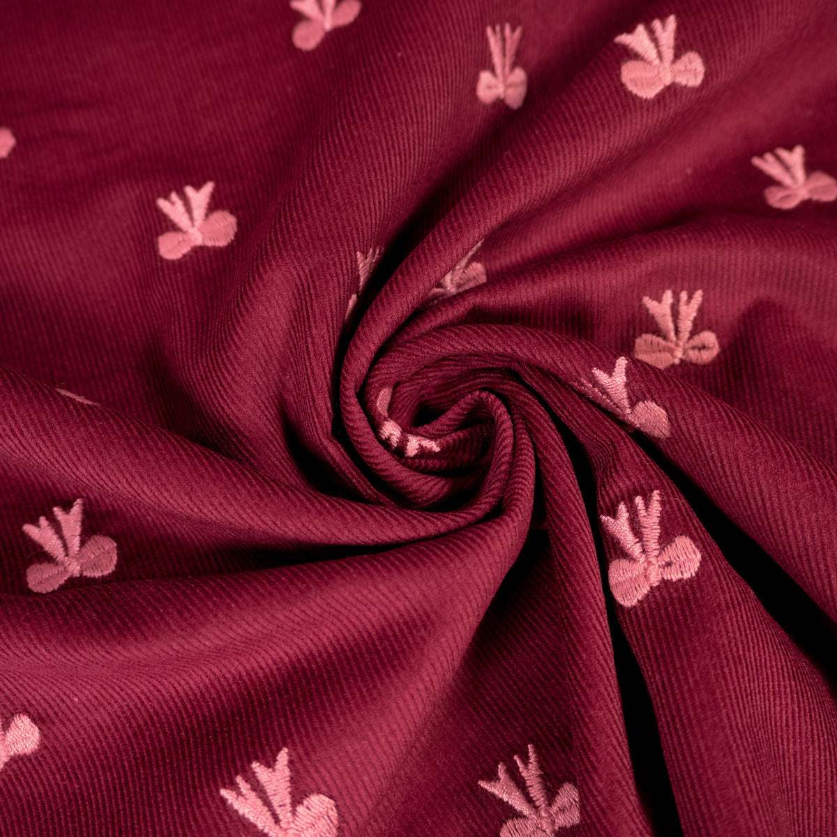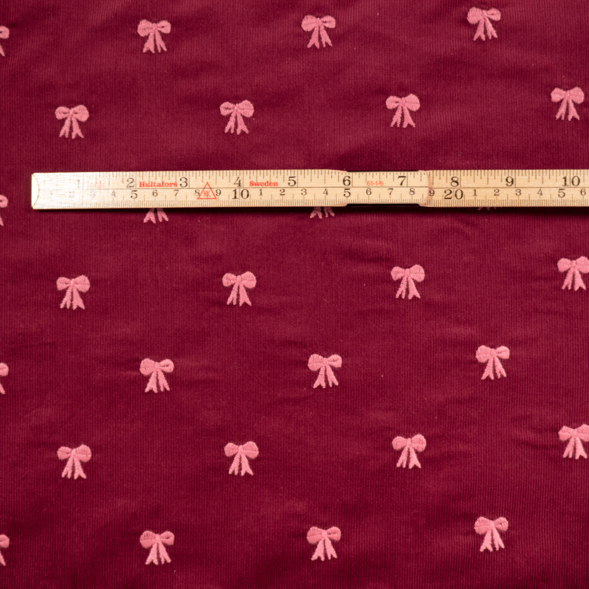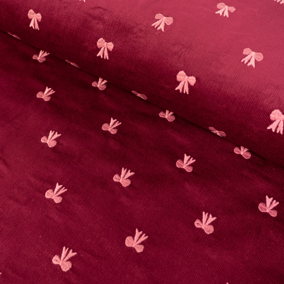 Coupon Velours milleraies - Noeuds brodés - Bordeaux
