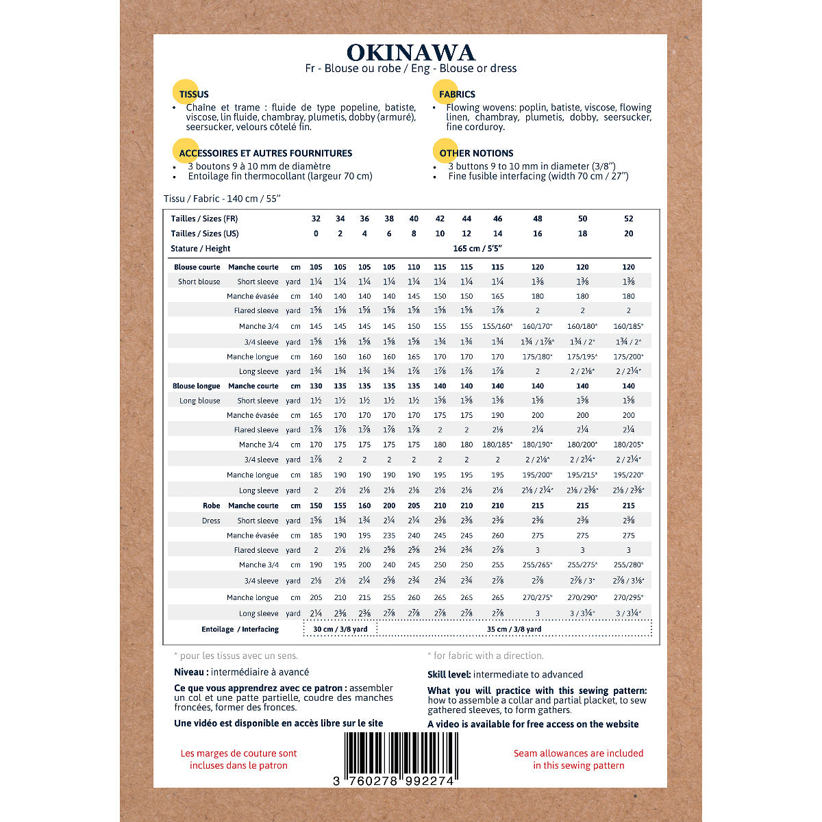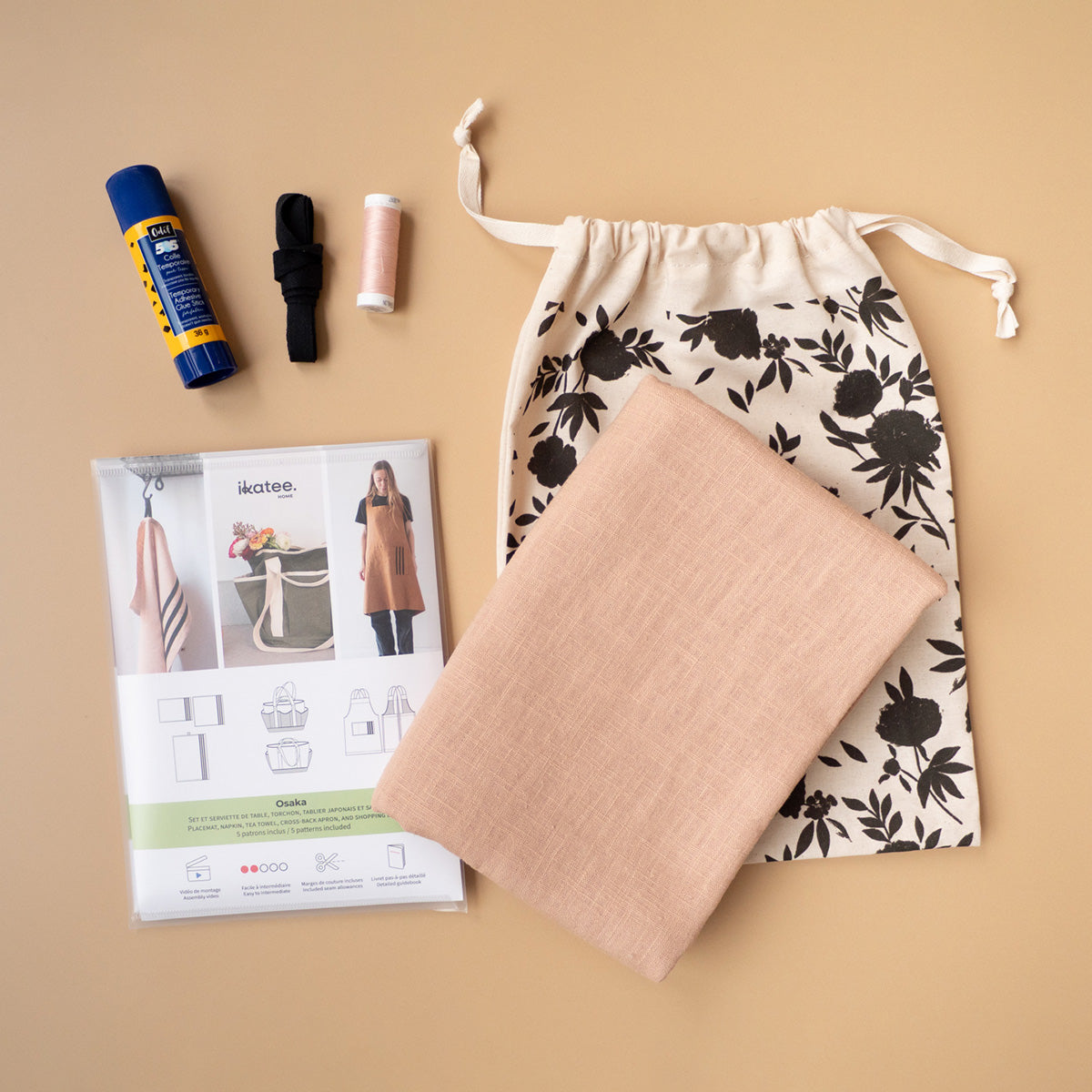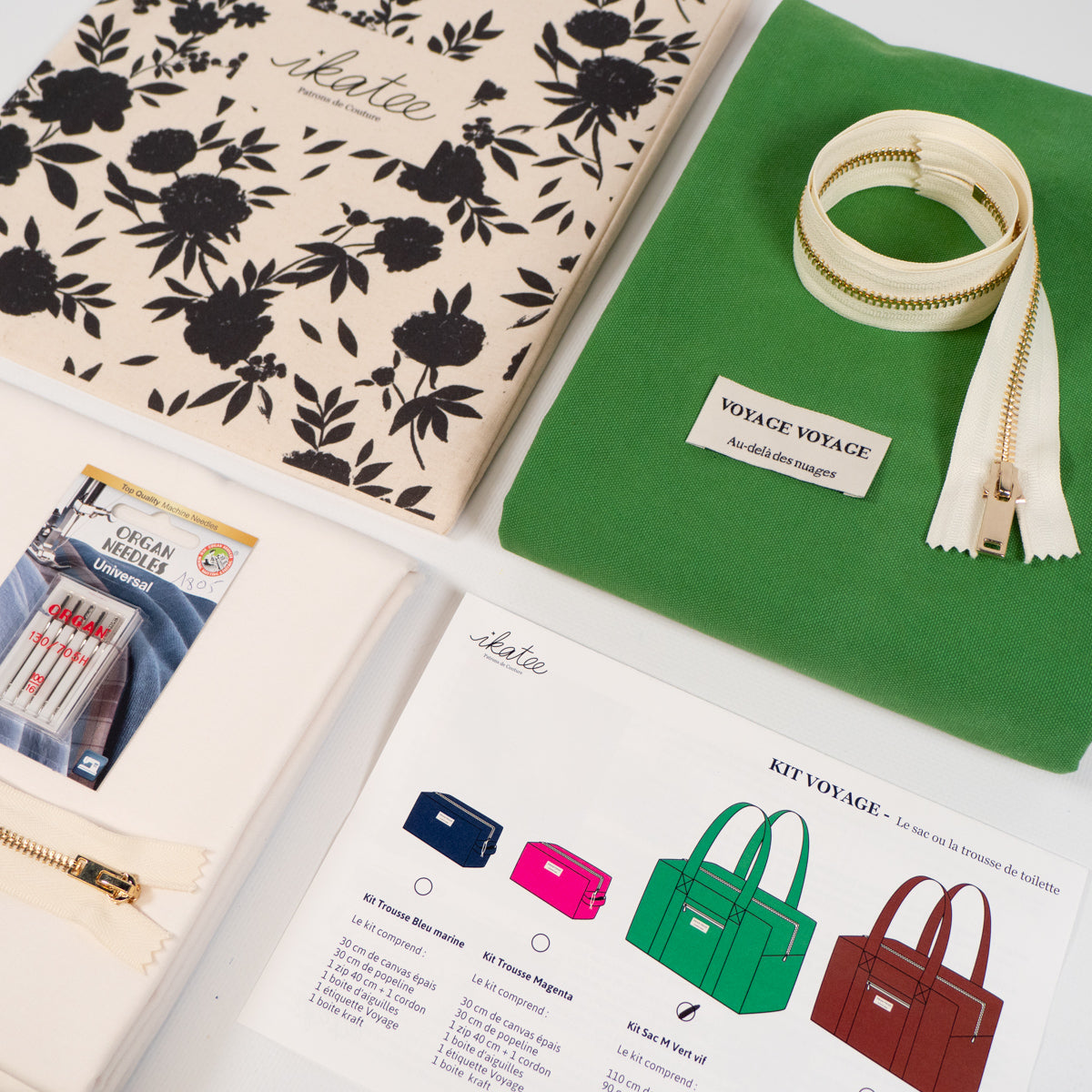 Dans chaque kit, vous trouverez du tissu, de la mercerie, éventuellement le patron de couture pour réaliser des modèles présentés dans notre boutique.