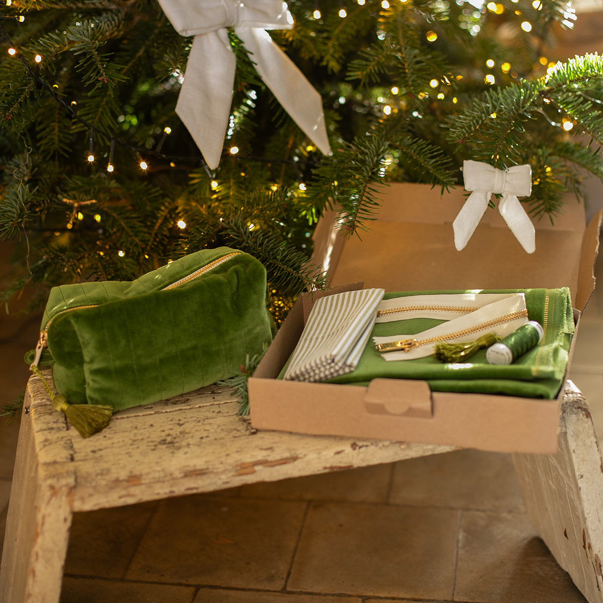 Ce kit comprend tous les éléments nécessaires pour coudre une trousse élégante, matelassée ou non selon votre envie dans ce très joli velours ras vert mousse de très belle qualité. Un projet rapide à coudre, parfait pour un cadeau de Noël ou pour se faire plaisir avec une création utile et élégante, à glisser dans la salle de bain, la valise ou le sac à main.