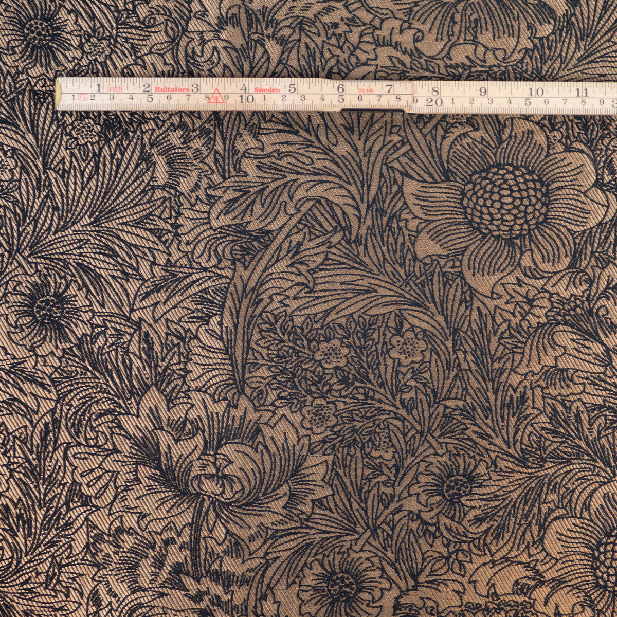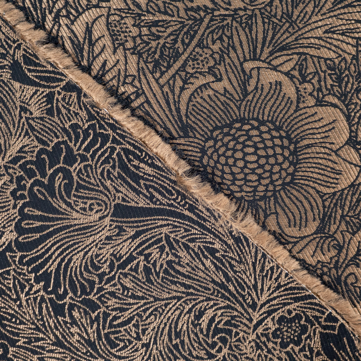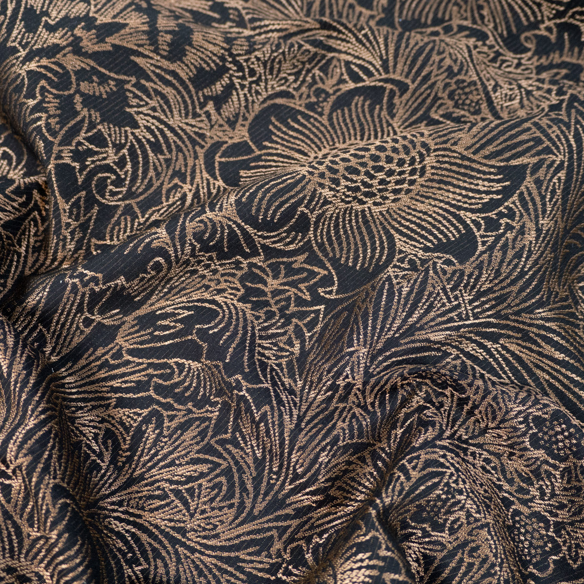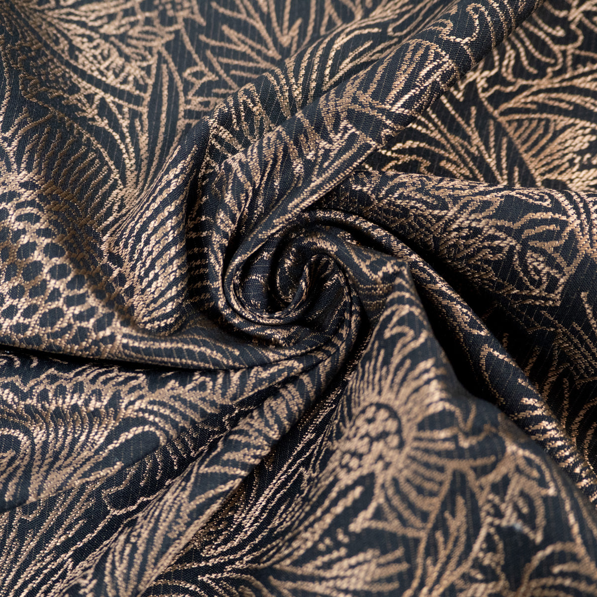 Ce jacquard de qualité séduit par son motif floral raffiné et ses couleurs profondes : un contraste élégant entre noir et bronze à l'effet moiré. Réversible, il permet de jouer avec les deux faces pour des créations originales. Sa belle tenue est idéale pour coudre des vestes, jupes, sacs ou accessoires au style sophistiqué.