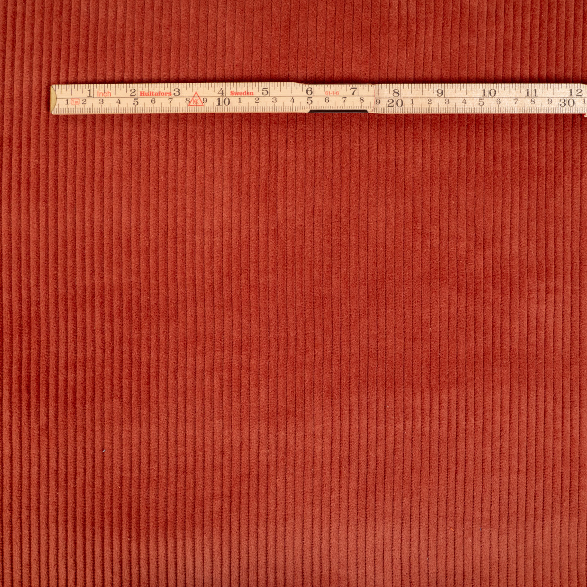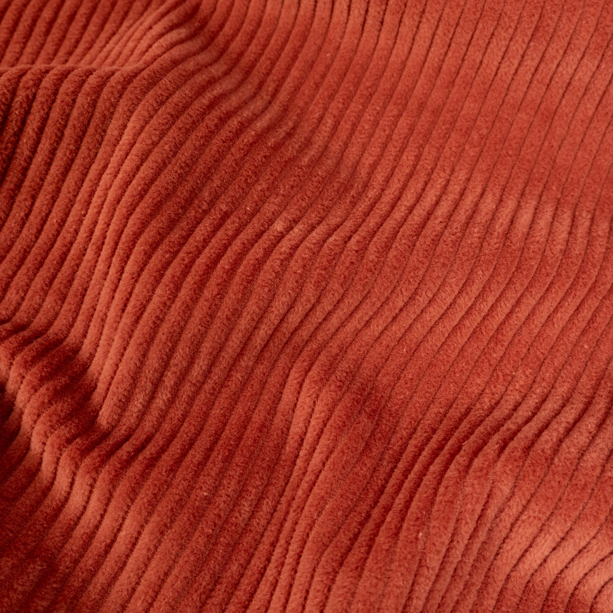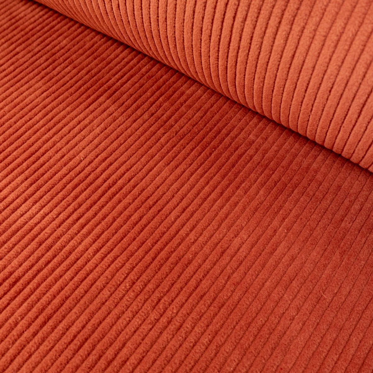 Type de matière : velours côtelé, c'est-à-dire un velours avec des rayures, ici larges (4 wales). Velours ras, duveteux, épais. Couper les pièces de préférence dans le même sens pour éviter les effets changeants de coloris (liés aux poils du velours).