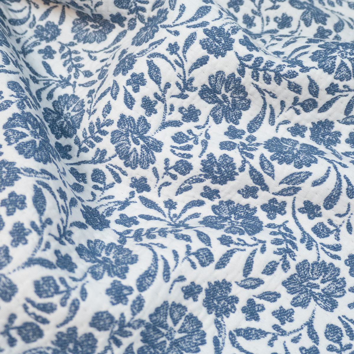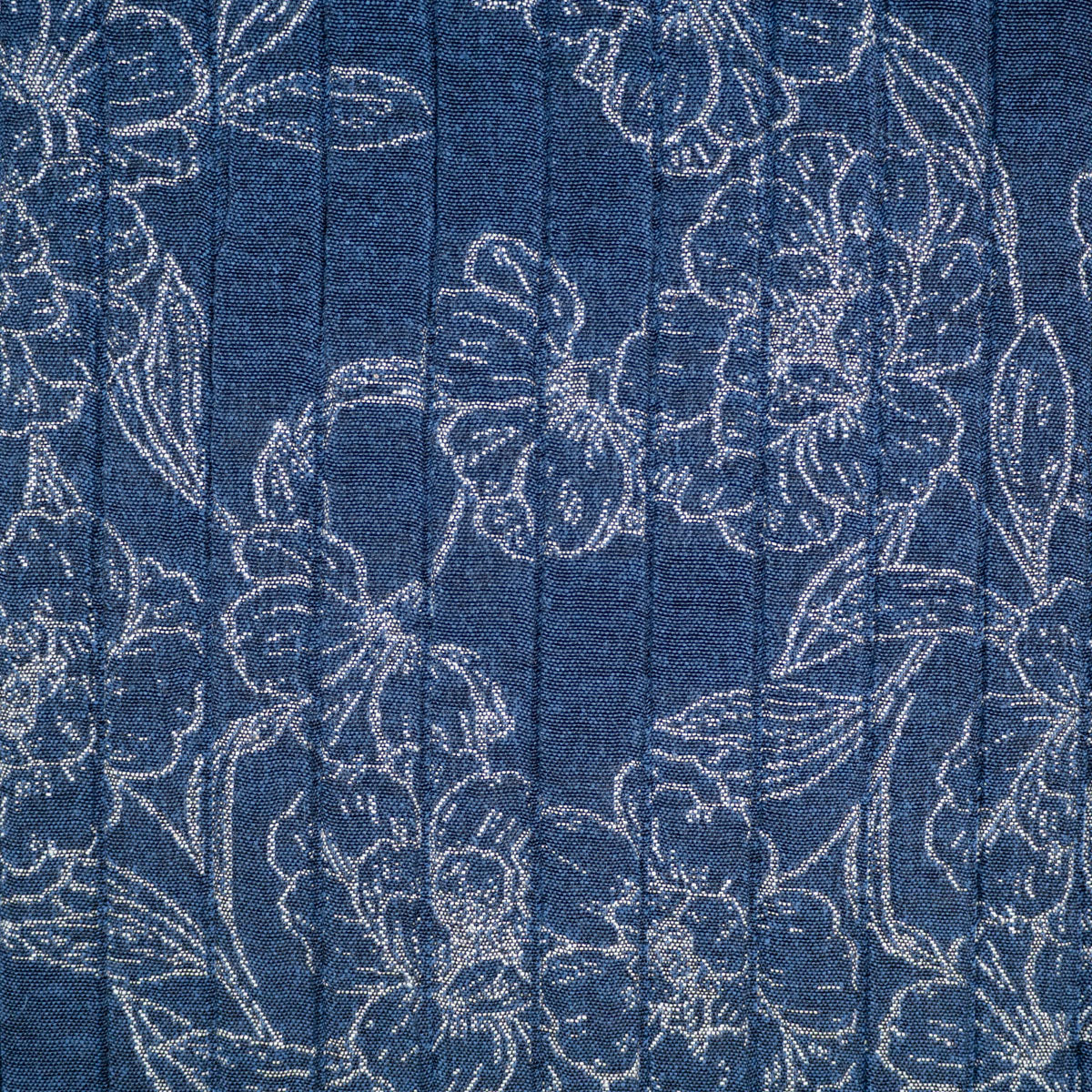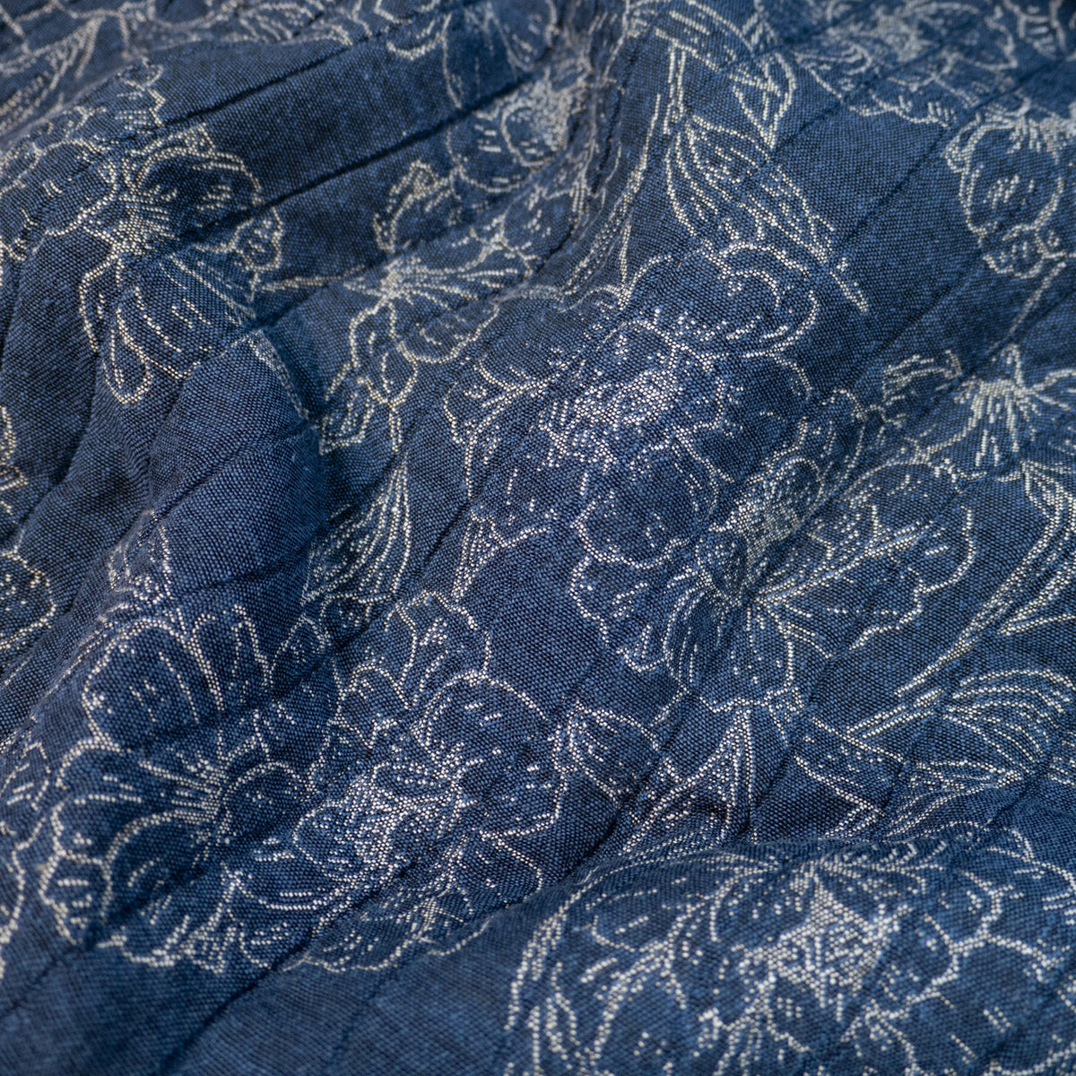 Tissu Jacquard matelassé - Fleurs japonaises - Bleu Marine