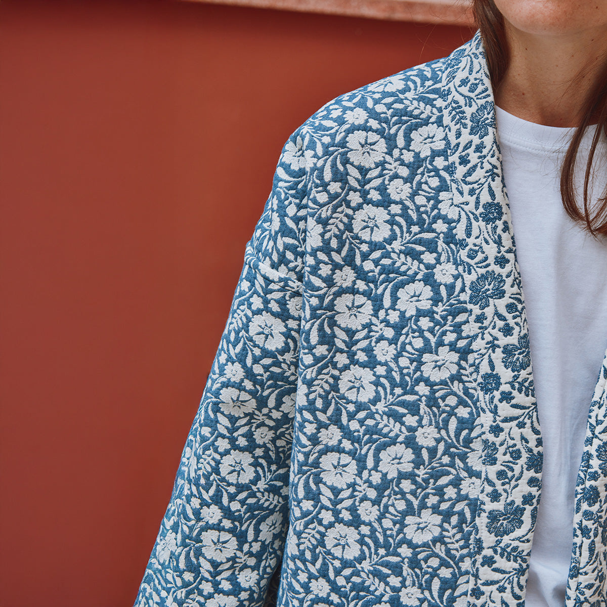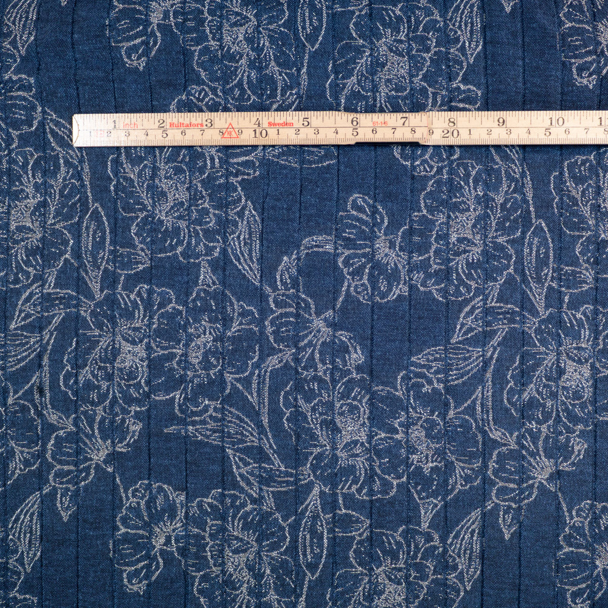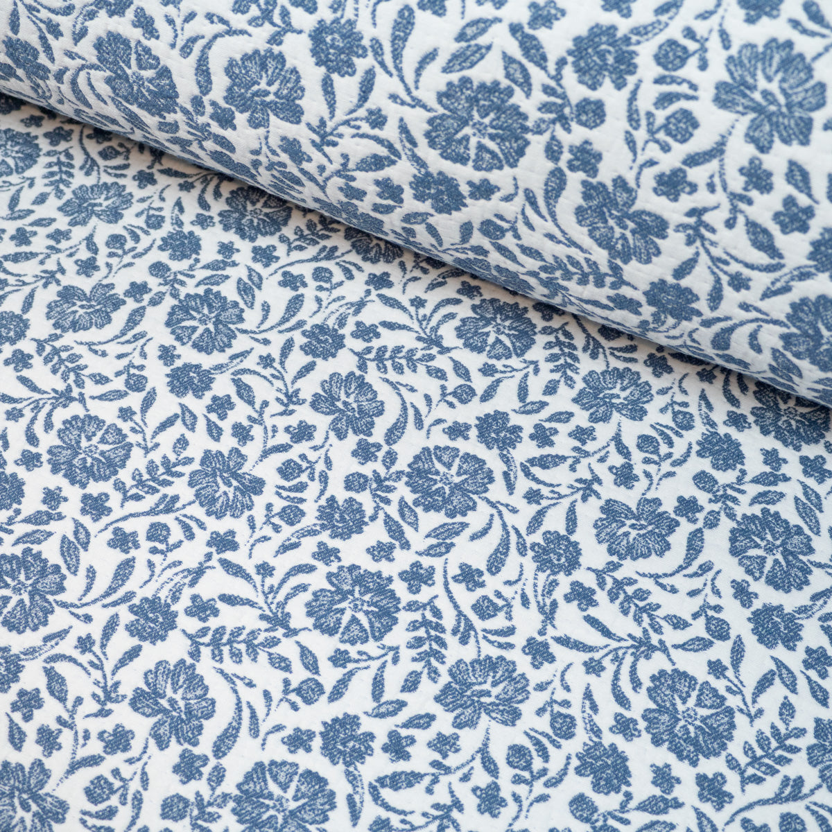 Tissu Jacquard matelassé - Fleurs japonaises - Bleu Marine