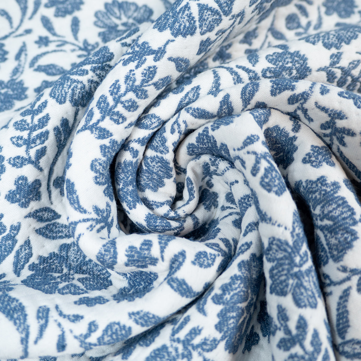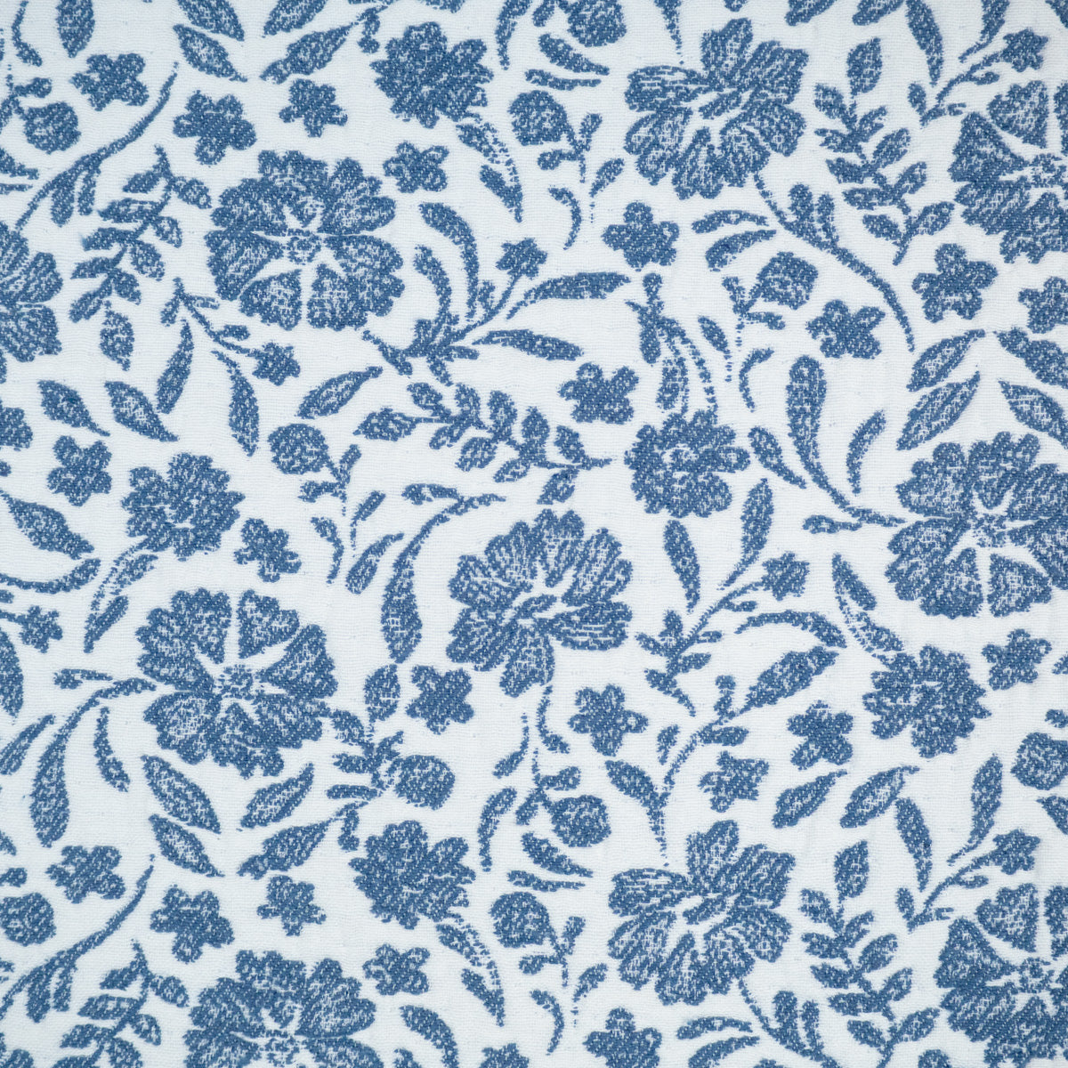 Tissu jacquard - Vichy et guirlande de fleurs - Marine et blanc
