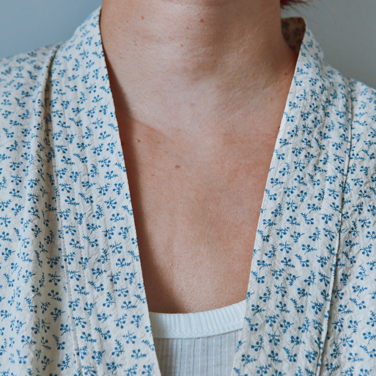 Tissu seersucker - Cottage little berries - Écru et bleu