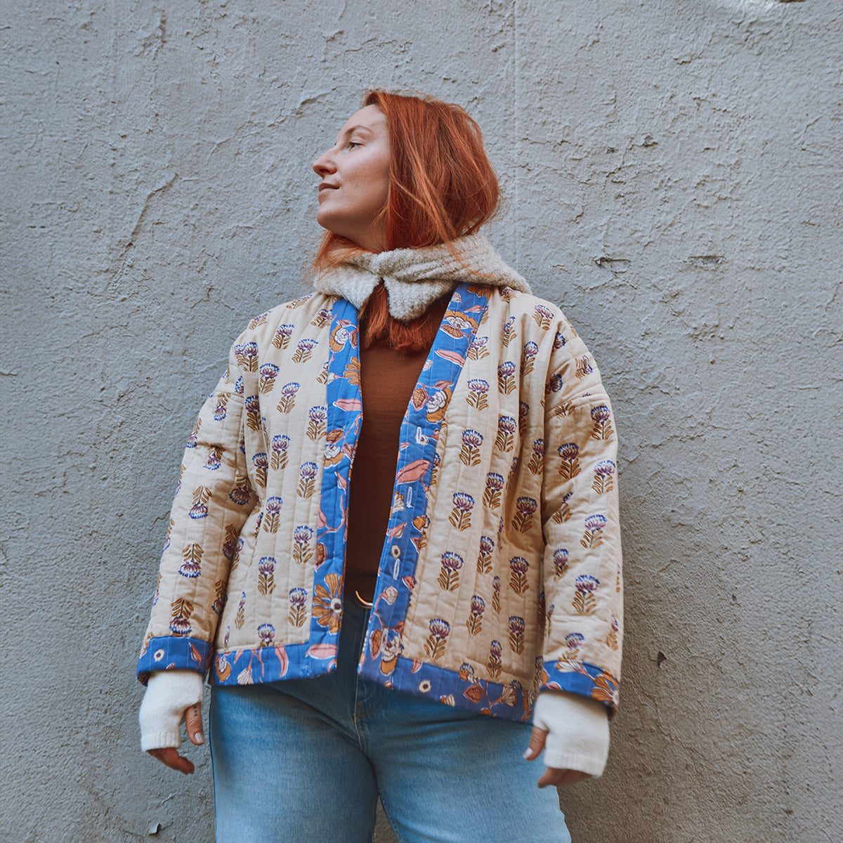 Tissu Popeline matelassée - Pooja / Esha - Bleu indigo et Jaune