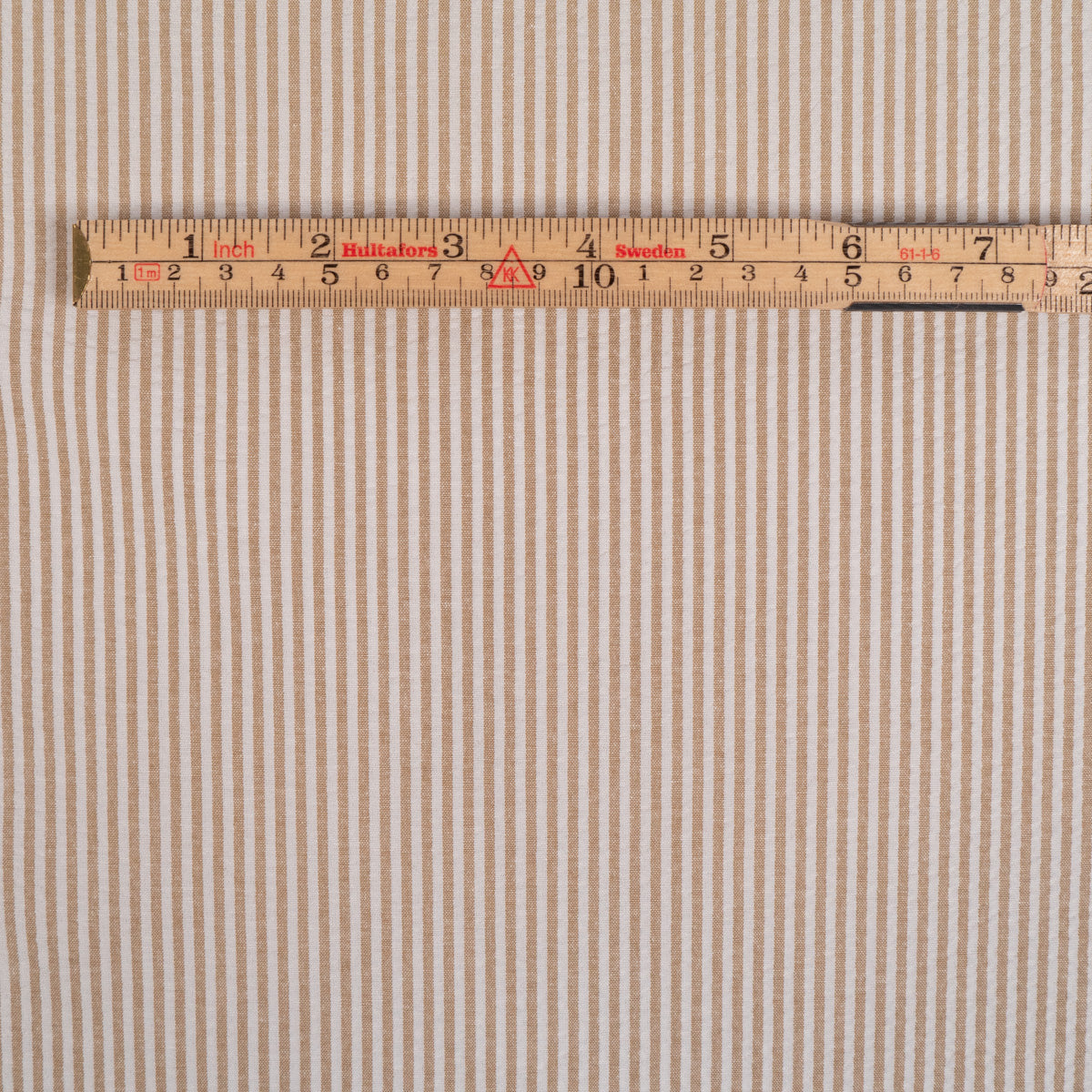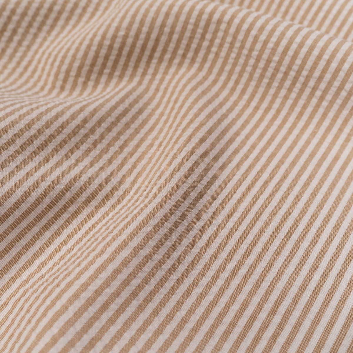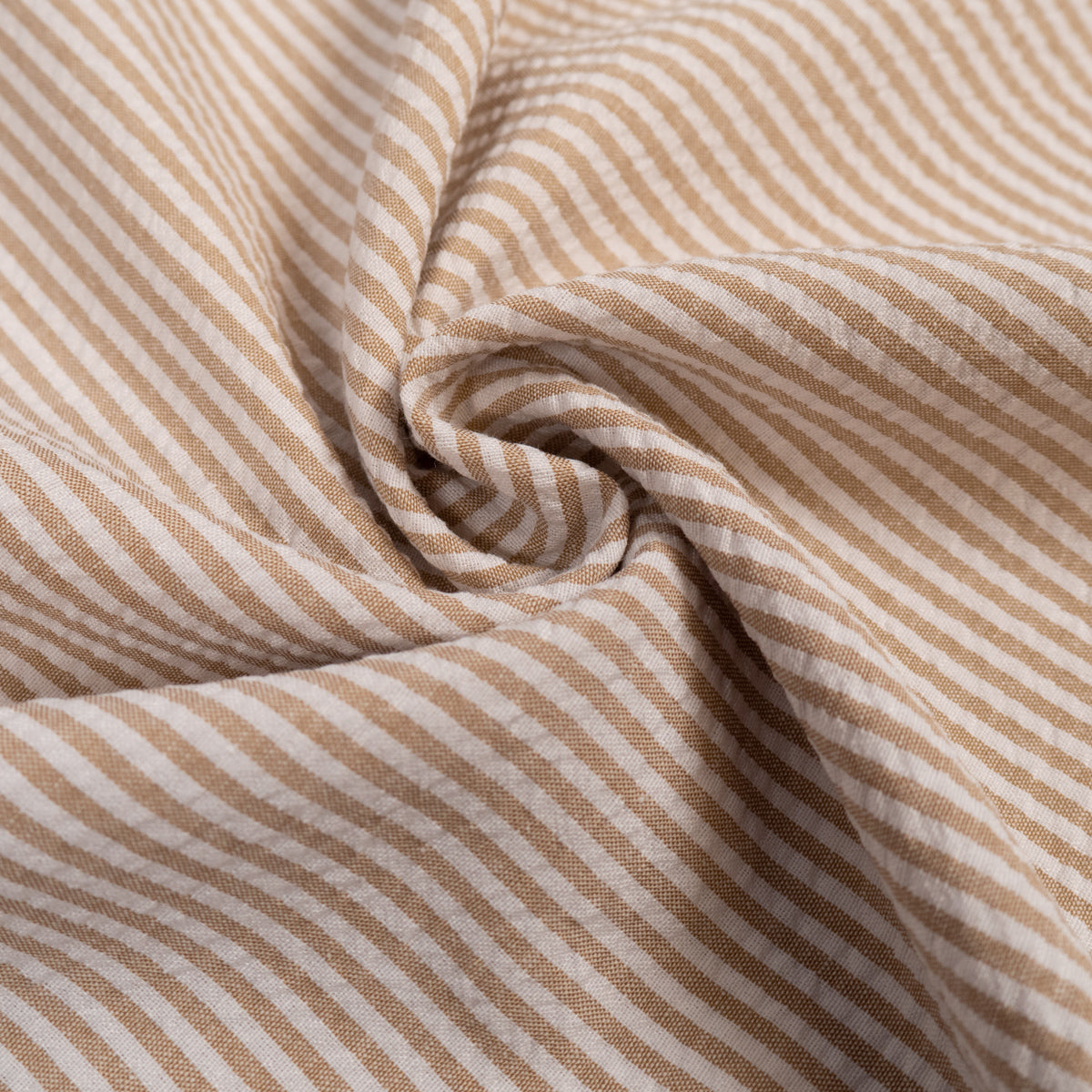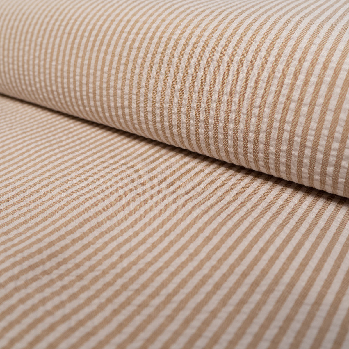 Tissu Seersucker rayé - Beige sable et Blanc