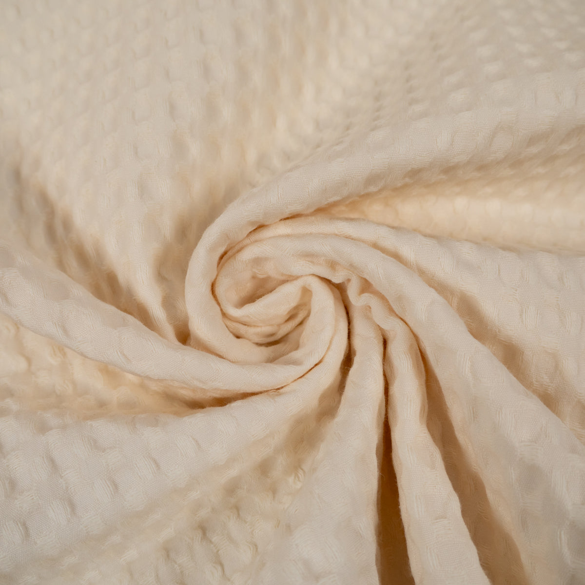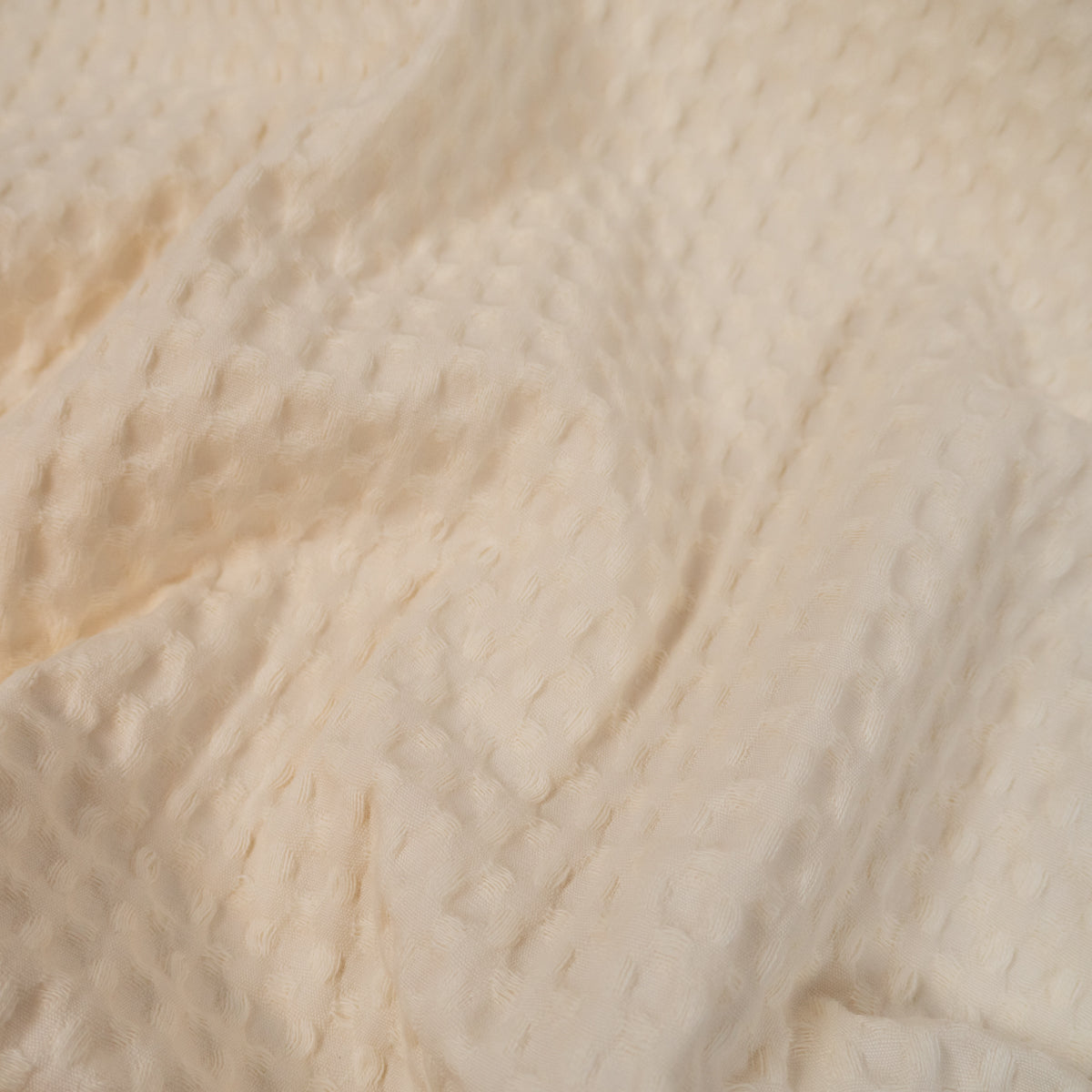 Tissu nid d'abeille tissé - Grands carreaux - Écru