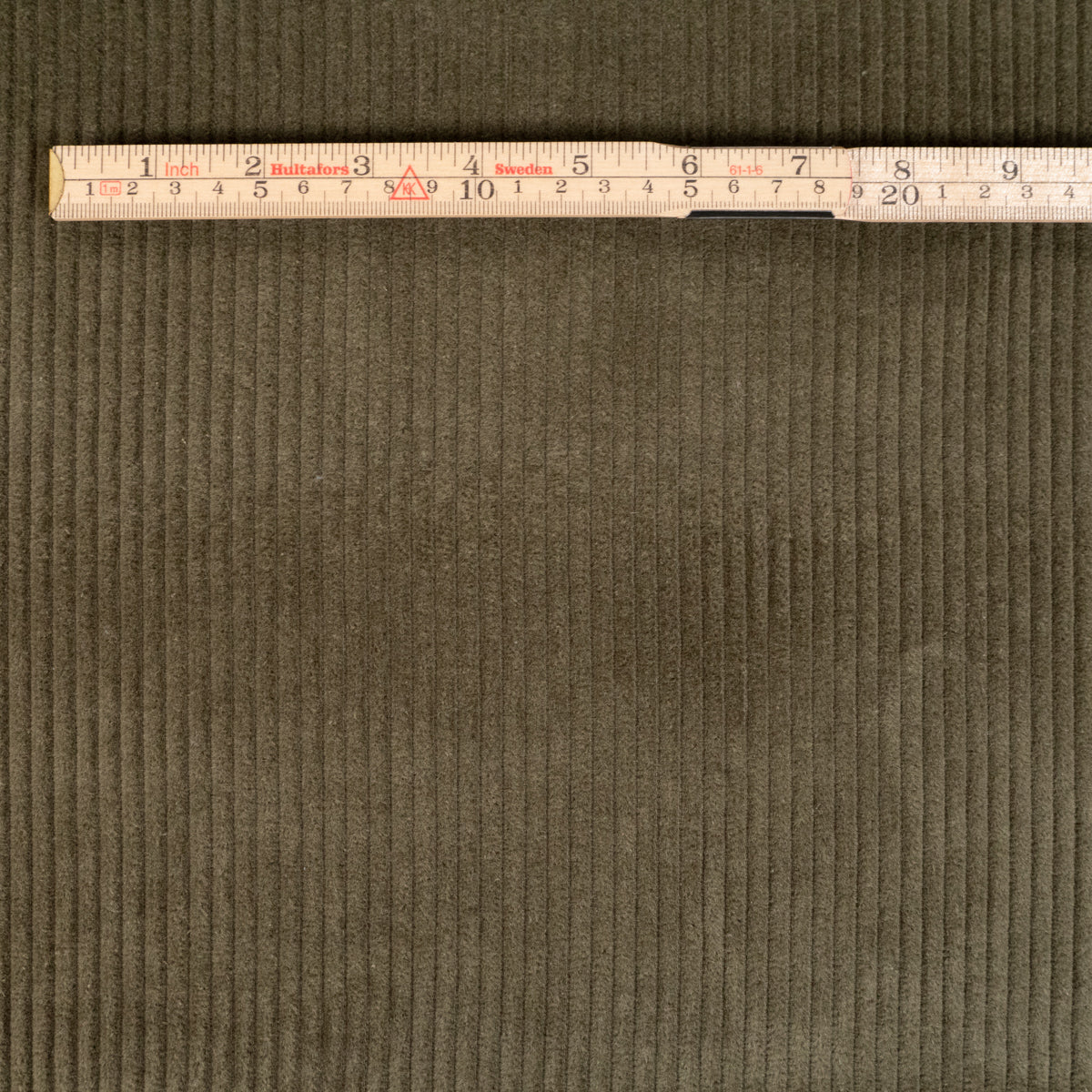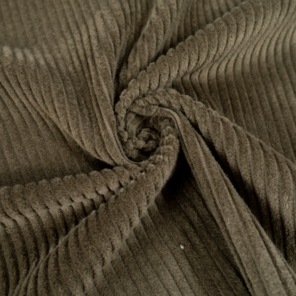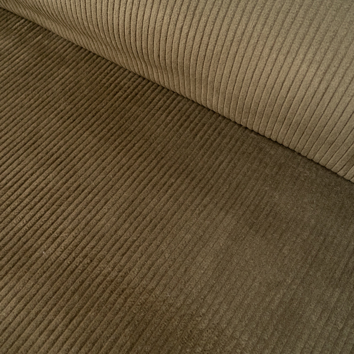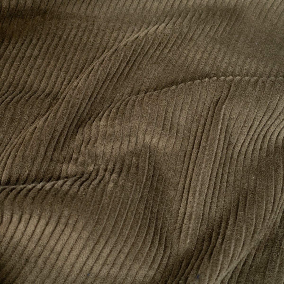 Type de matière : velours côtelé, c'est-à-dire un velours avec des rayures, ici larges (4 wales). Velours ras, duveteux, épais. Couper les pièces de préférence dans le même sens pour éviter les effets changeants de coloris (liés aux poils du velours).